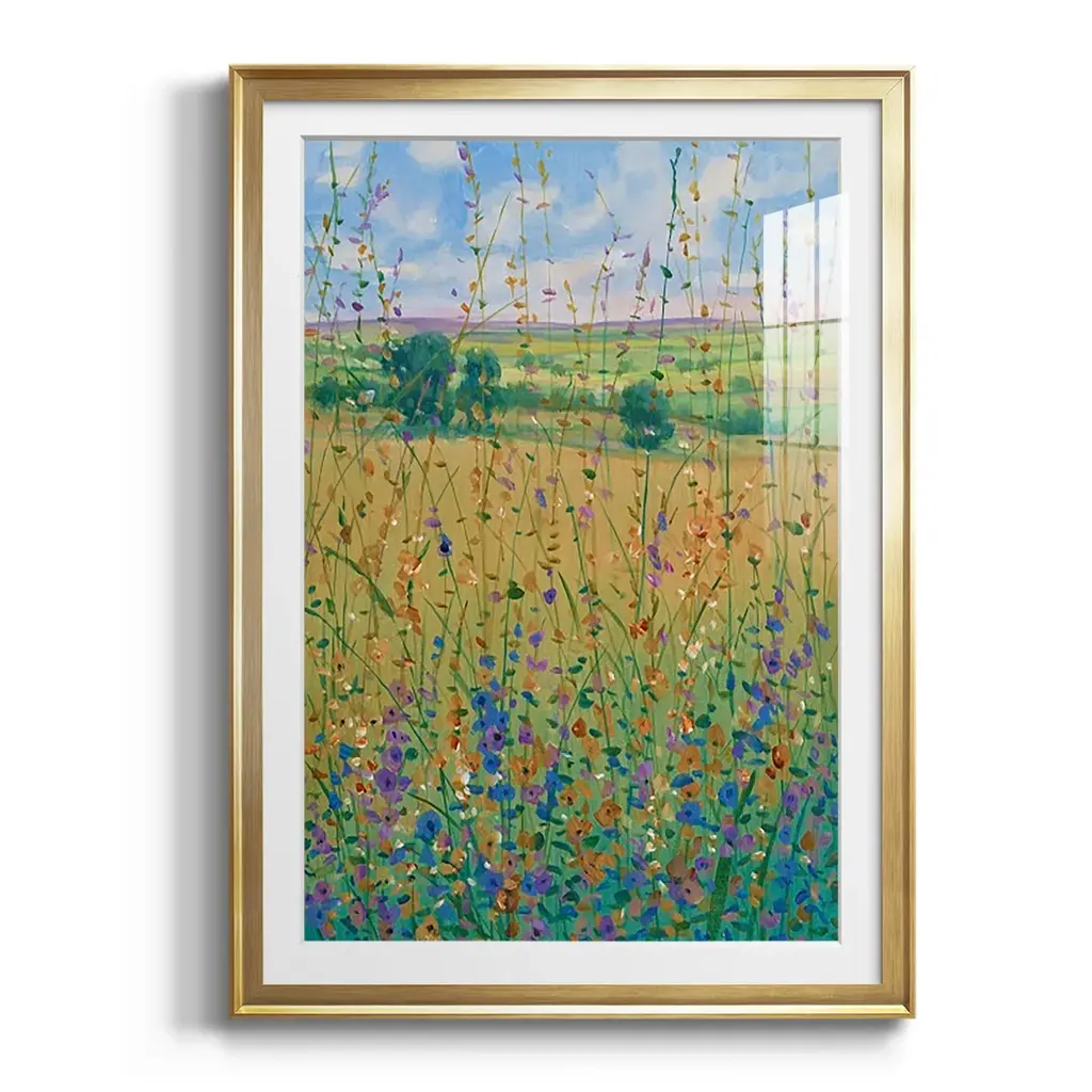 Wildflower Path I Premium Framed Print - Ready to Hang A Premium Framed Print created to last. Framed in distressed wood and available in an array of sizes and colors Featuring a beveled a solid wood stretcher bar, each piece comes ready to hand 4 SIZES AVAILABLE 30.5''X42.5'' - Overall Size 26.5'X36.5'' - Overall Size 22.5''x30.5'' - Overall Size 18.5''x24.5'' - Overall Size Each piece is made to order. Each piece comes with hanging hardware. Made in the USA Ready to Hang Giclee Paper Print Acrylic Glass Beveled Matt Board