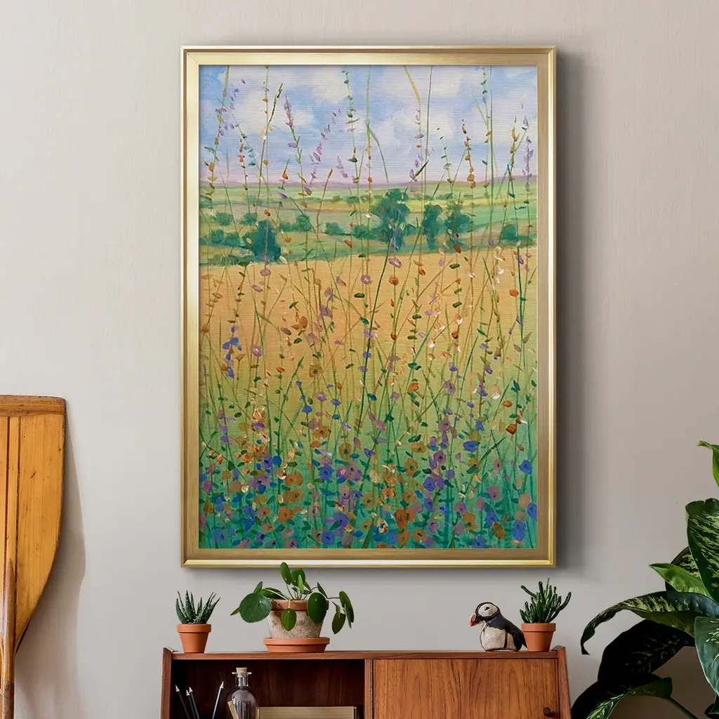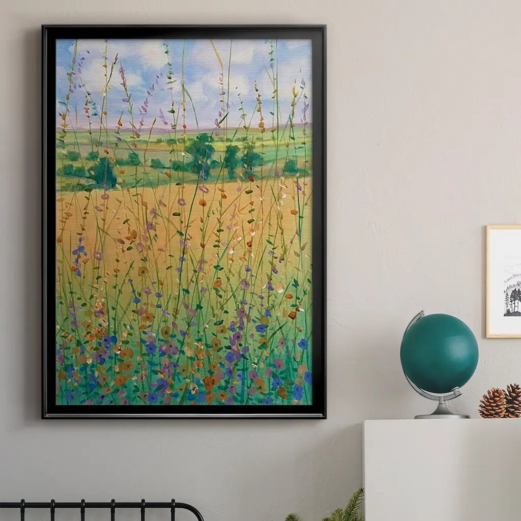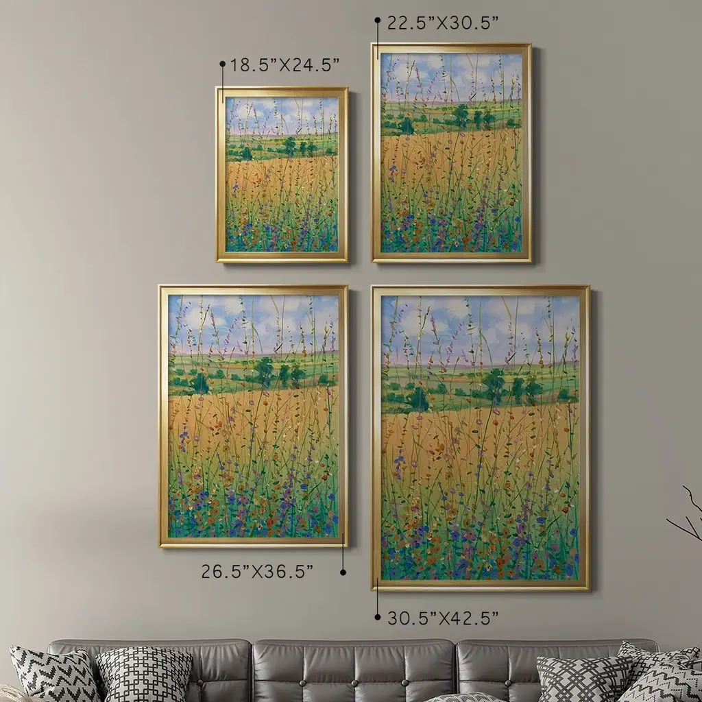 Wildflower Path II Premium Framed Print - Ready to Hang A Premium Framed Print created to last. Framed in distressed wood and available in an array of sizes and colors Featuring a beveled a solid wood stretcher bar, each piece comes ready to hand 4 SIZES AVAILABLE 30.5''X42.5'' - Overall Size 26.5'X36.5'' - Overall Size 22.5''x30.5'' - Overall Size 18.5''x24.5'' - Overall Size Each piece is made to order. Each piece comes with hanging hardware. Made in the USA Ready to Hang