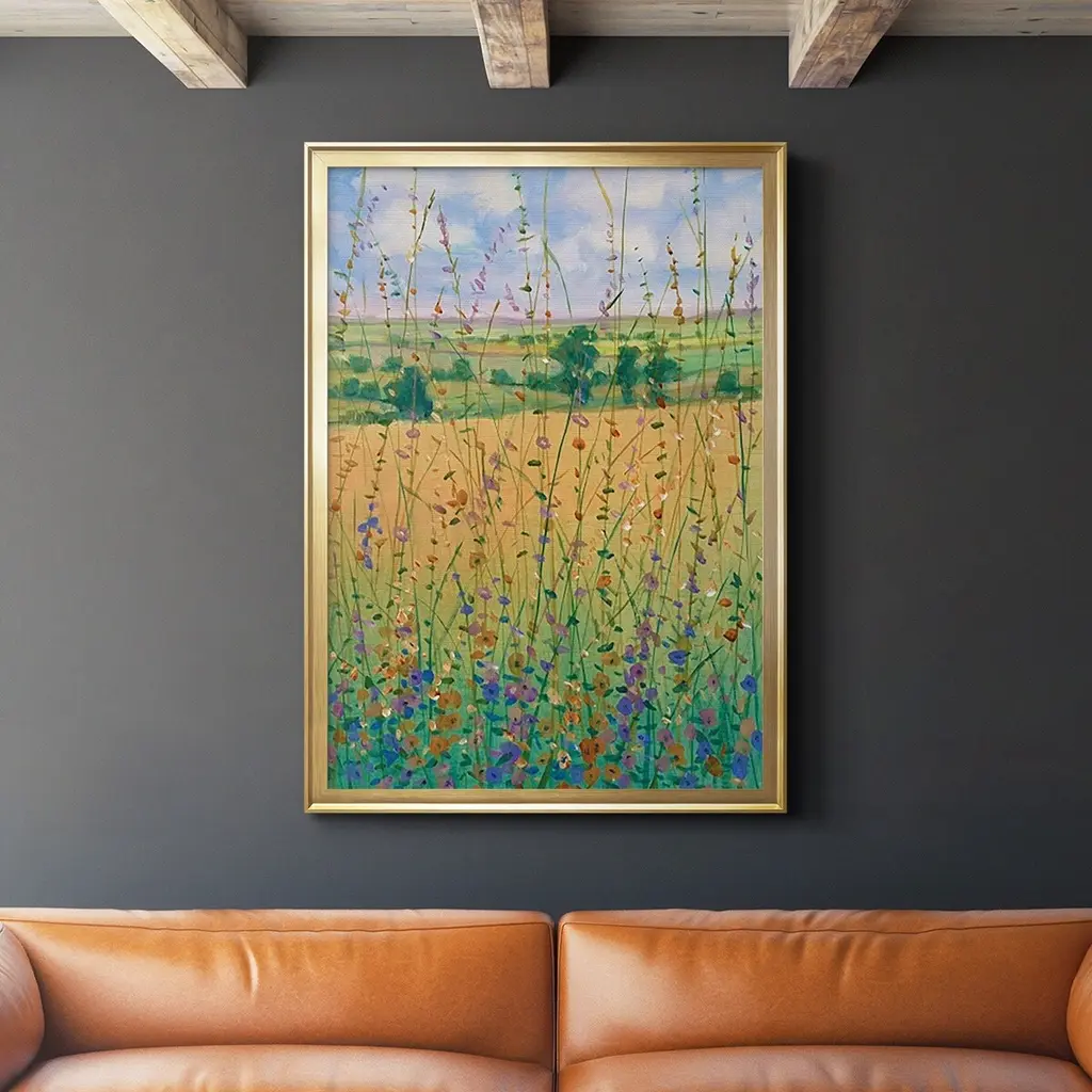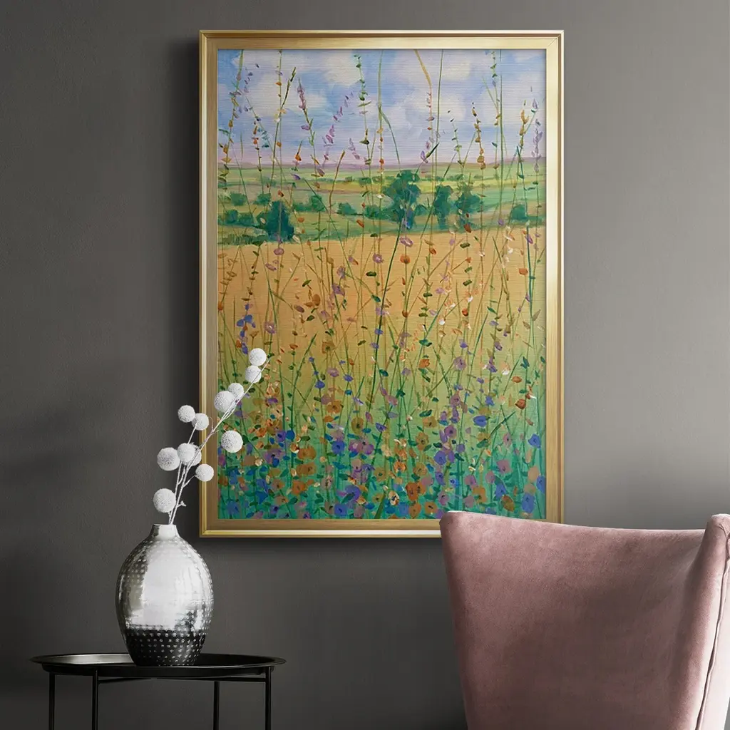 Wildflower Path II Premium Framed Print - Ready to Hang A Premium Framed Print created to last. Framed in distressed wood and available in an array of sizes and colors Featuring a beveled a solid wood stretcher bar, each piece comes ready to hand 4 SIZES AVAILABLE 30.5''X42.5'' - Overall Size 26.5'X36.5'' - Overall Size 22.5''x30.5'' - Overall Size 18.5''x24.5'' - Overall Size Each piece is made to order. Each piece comes with hanging hardware. Made in the USA Ready to Hang