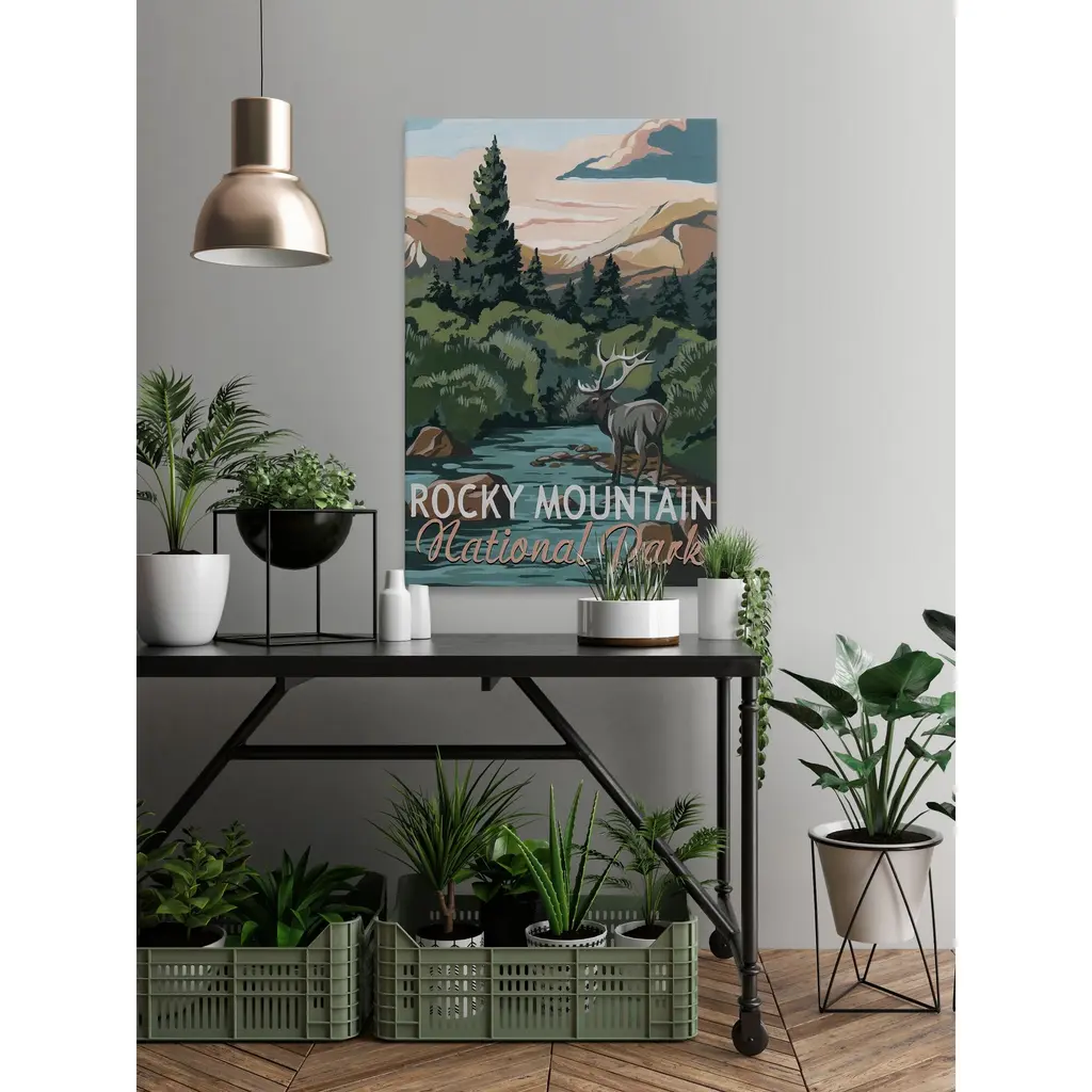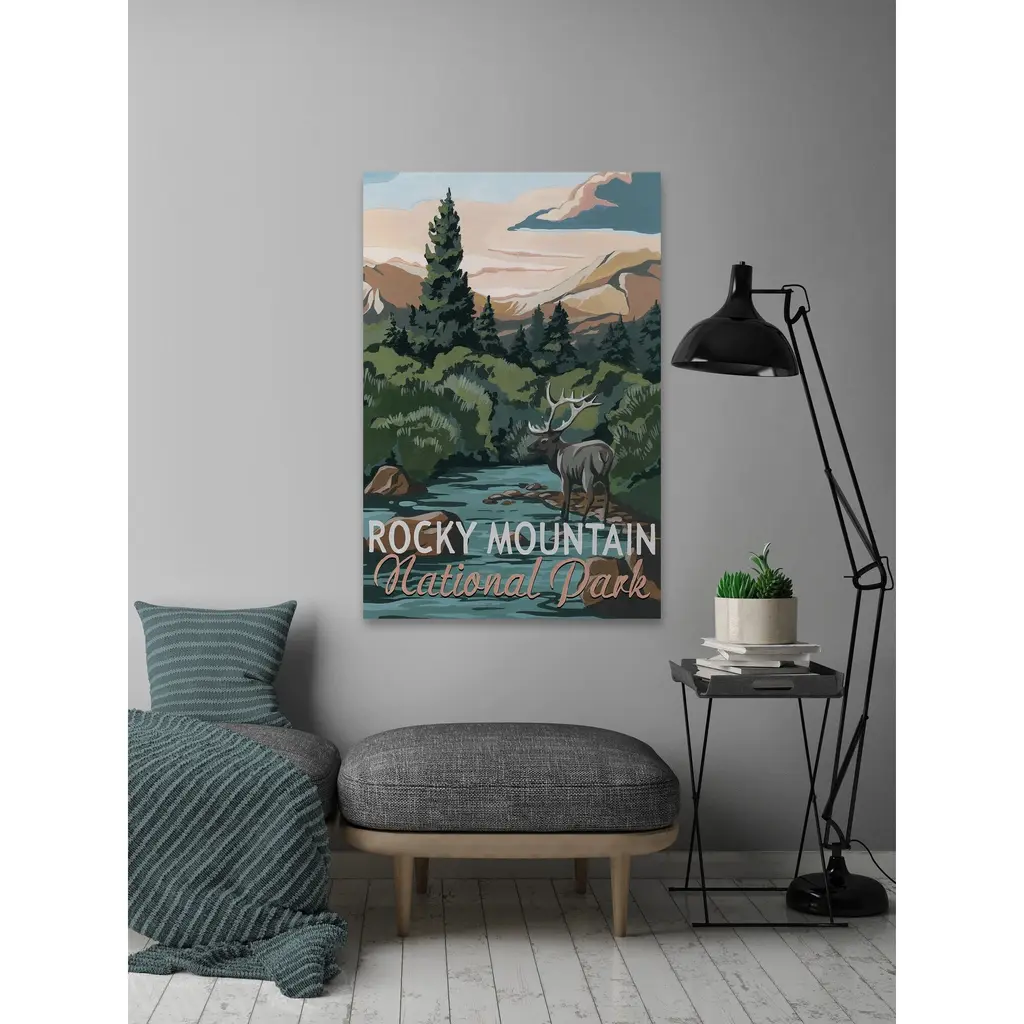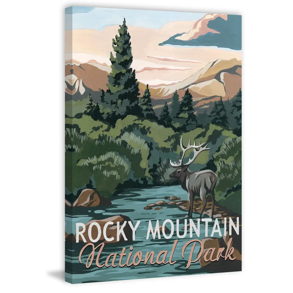 Perfect for nature lovers, this print showcases the Rocky Mountains in Colorado. Featuring a moose meandering throughout the shallow waters below the mountains. Proudly made in the USA, this piece is printed on canvas before it's stretched over non-warping wooden bars for a gallery-wrapped look. With wall-mounting hooks included, this artful accent is ready to hang up as soon as it reaches your front door. • Fine art canvas print from the Marmont Hill Art Collective • Professionally hand stretched • Gallery wrapped in sustainable, non-warping wood • Arrives ready to hang • Made in the USA • Includes a certificate of authenticity