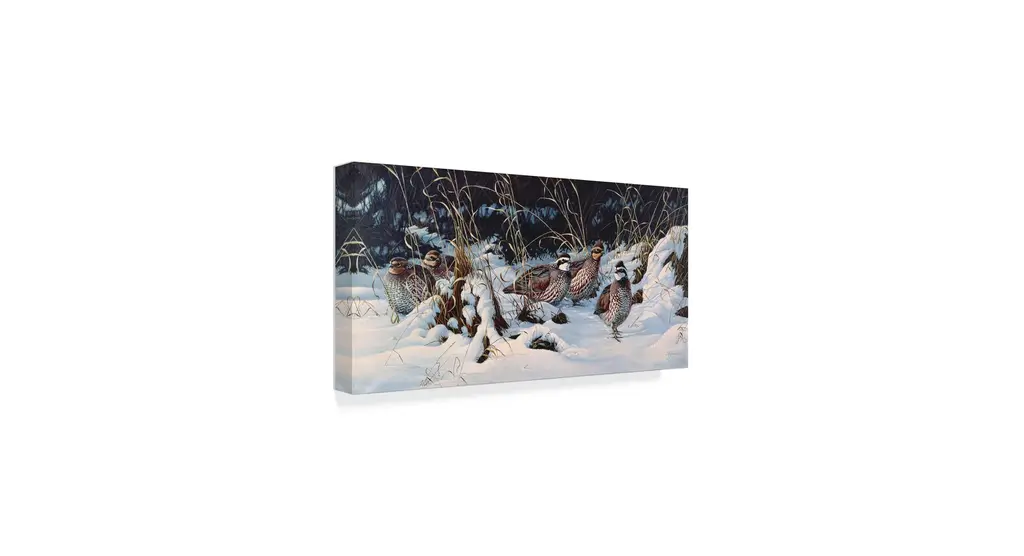 Artist: Wilhelm GoebelSubject: AnimalsStyle: Natural ModernProduct Type: Gallery-Wrapped Canvas ArtMade in USAThis ready to hang, gallery-wrapped art piece features covey standing in snow.Born 1960 in New Brunswick, New Jersey, Wilhelm J. Goebel is a national known wildlife artist. A graduate of Ithaca College in Ithaca New York, Goebel received a degree in biology. He has made a lifetime study of bird anatomy and made field trips throughout Canada, the U.S. and the West Indies to study wildlife. His paintings have been featured in many publications including Outdoor Life, National Wildlife, Birdwatchers Digest, Sporting Classics and Wildlife Art Magazine to name a few.Giclee (jee-clay) is an advanced printmaking process for creating high quality fine art reproductions. The attainable excellence that Giclee printmaking affords makes the reproduction virtually indistinguishable from the original piece. The result is wide acceptance of Giclee by galleries, museums, and private collectors. Gallery wrap is a method of stretching an artist's canvas so that the canvas wraps around the sides and is secured a hidden, wooden frame. This method of stretching and preparing a canvas allows for a frameless presentation of the finished painting.