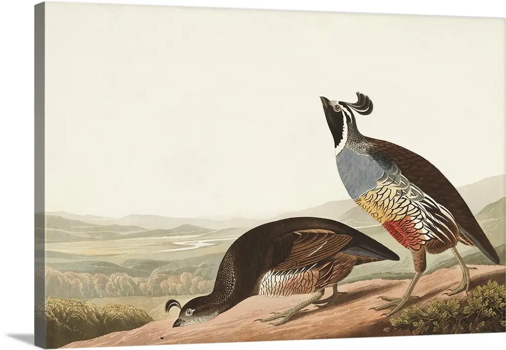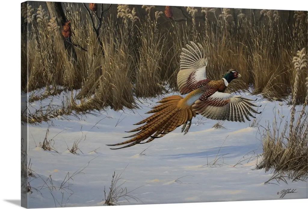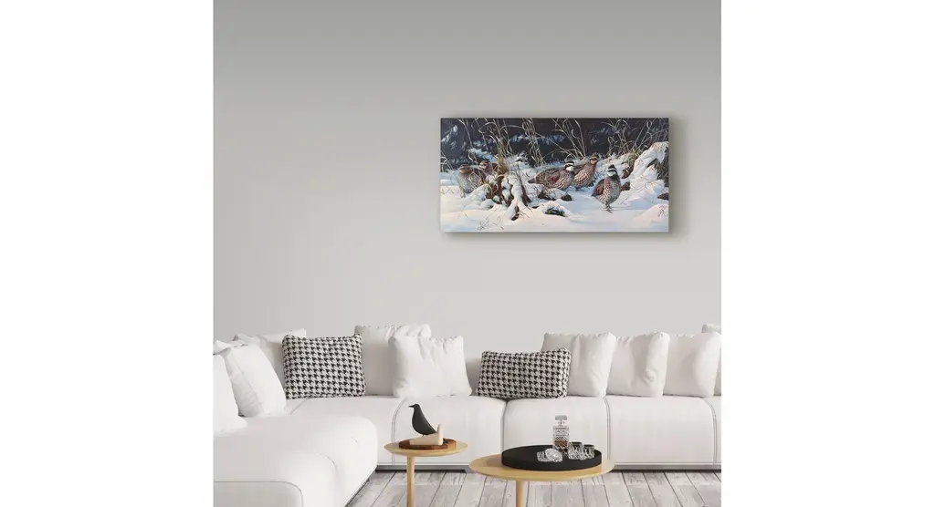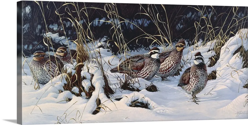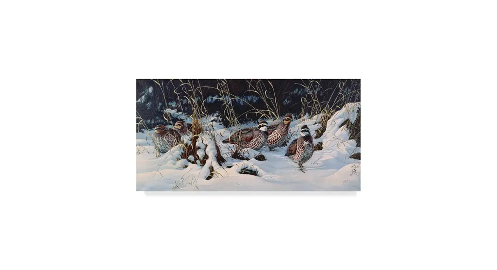 Artist: Wilhelm GoebelSubject: AnimalsStyle: Natural ModernProduct Type: Gallery-Wrapped Canvas ArtMade in USAThis ready to hang, gallery-wrapped art piece features covey standing in snow.Born 1960 in New Brunswick, New Jersey, Wilhelm J. Goebel is a national known wildlife artist. A graduate of Ithaca College in Ithaca New York, Goebel received a degree in biology. He has made a lifetime study of bird anatomy and made field trips throughout Canada, the U.S. and the West Indies to study wildlife. His paintings have been featured in many publications including Outdoor Life, National Wildlife, Birdwatchers Digest, Sporting Classics and Wildlife Art Magazine to name a few.Giclee (jee-clay) is an advanced printmaking process for creating high quality fine art reproductions. The attainable excellence that Giclee printmaking affords makes the reproduction virtually indistinguishable from the original piece. The result is wide acceptance of Giclee by galleries, museums, and private collectors. Gallery wrap is a method of stretching an artist's canvas so that the canvas wraps around the sides and is secured a hidden, wooden frame. This method of stretching and preparing a canvas allows for a frameless presentation of the finished painting.