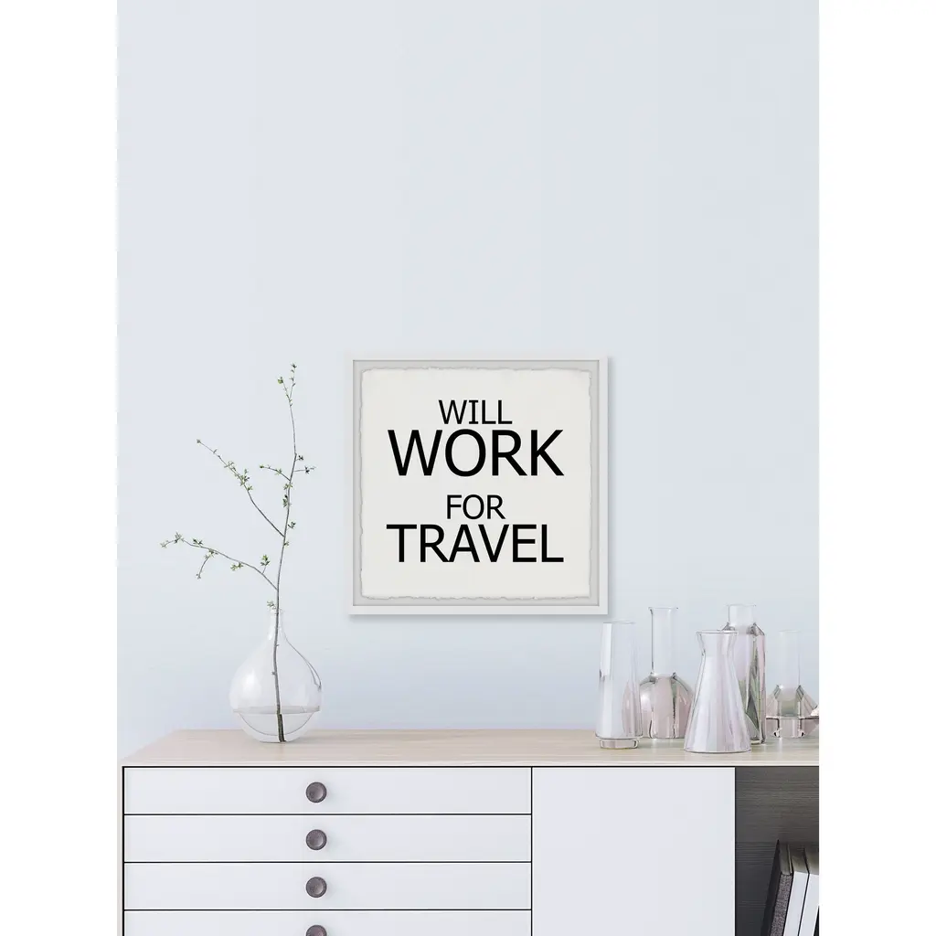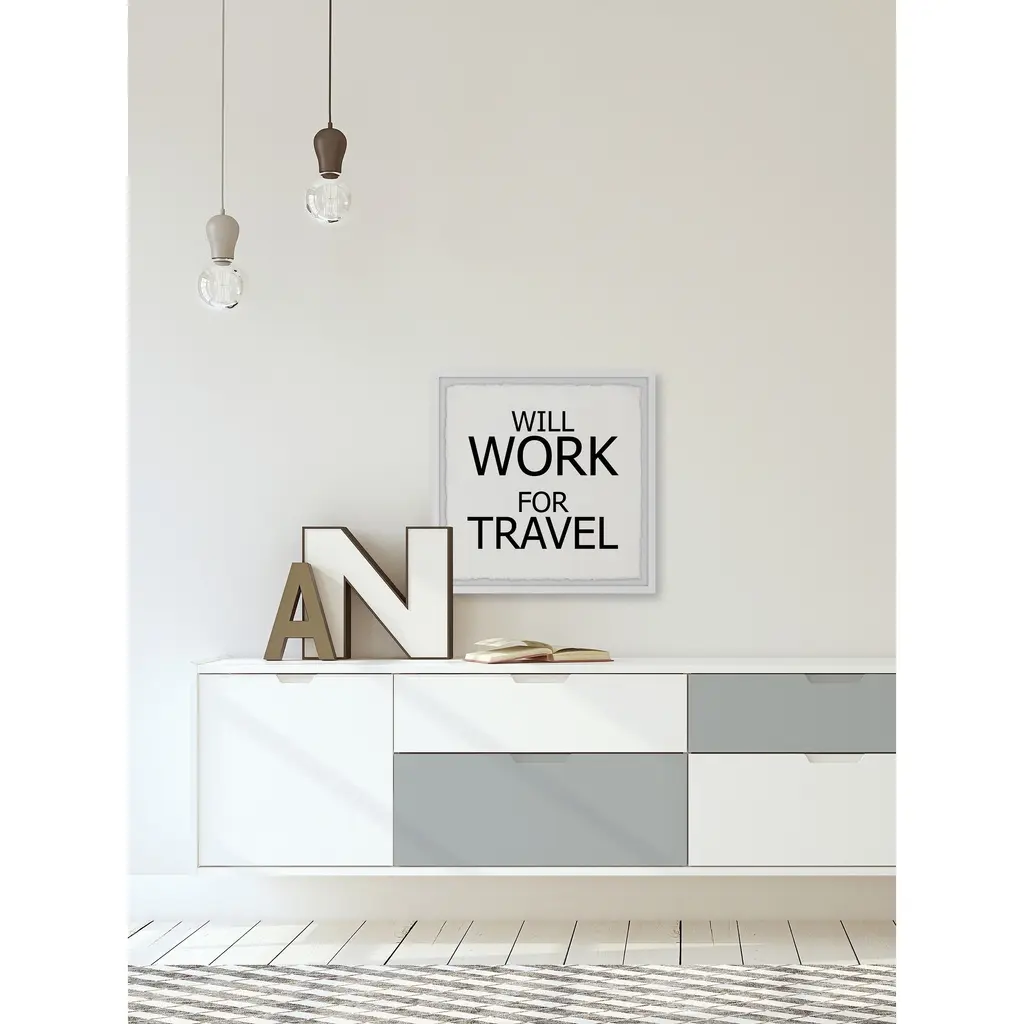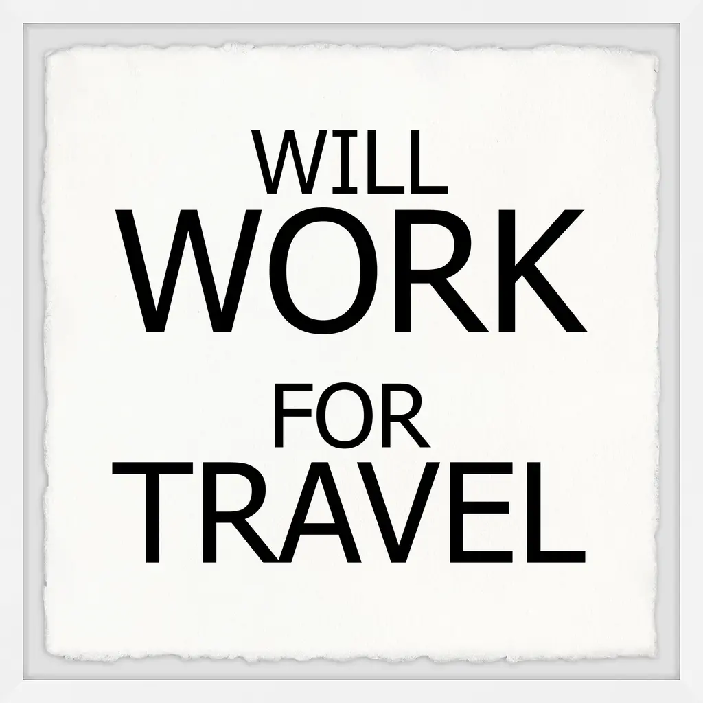 'Will Work For Travel' Framed Painting Print - Multi-Color - 12 X 12