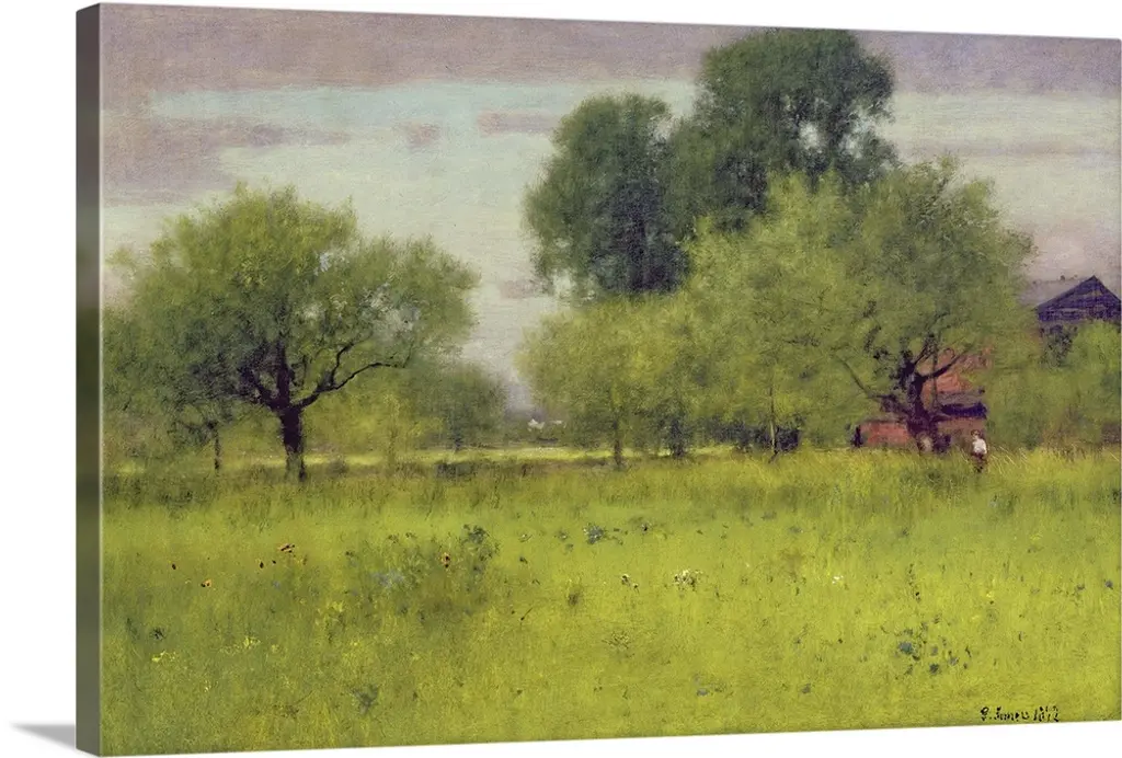 20" x 25" Willard Leroy Metcalf Summer Night (No. 2) gallery wrap premium canvas print reproduced to meet museum quality standards. Our Museum quality canvas prints are produced using high-precision print technology for a more accurate reproduction printed on high quality canvas with fade-resistant, archival inks. Our progressive business model allows us to offer works of art to you at the best wholesale pricing, significantly less than art gallery prices, affordable to all. This artwork is hand stretched onto wooden stretcher bars by one of our expert framers. Our gallery wrap canvas print comes with hardware, ready to hang on your wall. We present a comprehensive collection of exceptional canvas art reproductions by Willard Leroy Metcalf .