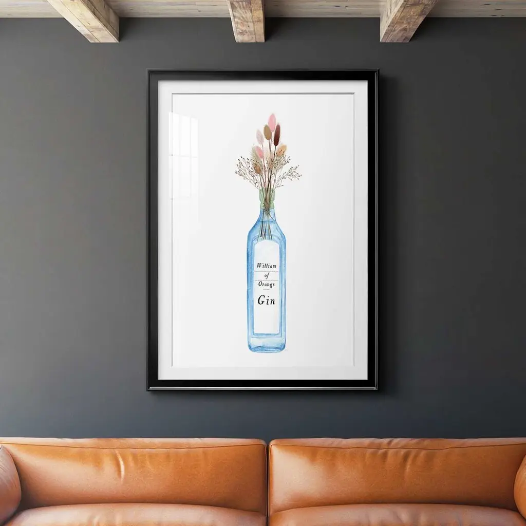 William of Orange Gin Premium Framed Print - Ready to Hang A Premium Framed Print created to last. Framed in distressed wood and available in an array of sizes and colors Featuring a beveled a solid wood stretcher bar, each piece comes ready to hand 4 SIZES AVAILABLE 30.5''X42.5'' - Overall Size 26.5'X36.5'' - Overall Size 22.5''x30.5'' - Overall Size 18.5''x24.5'' - Overall Size Each piece is made to order. Each piece comes with hanging hardware. Made in the USA Ready to Hang Giclee Paper Print Acrylic Glass Beveled Matt Board