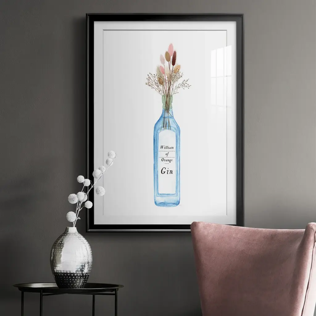 William of Orange Gin Premium Framed Print - Ready to Hang A Premium Framed Print created to last. Framed in distressed wood and available in an array of sizes and colors Featuring a beveled a solid wood stretcher bar, each piece comes ready to hand 4 SIZES AVAILABLE 30.5''X42.5'' - Overall Size 26.5'X36.5'' - Overall Size 22.5''x30.5'' - Overall Size 18.5''x24.5'' - Overall Size Each piece is made to order. Each piece comes with hanging hardware. Made in the USA Ready to Hang Giclee Paper Print Acrylic Glass Beveled Matt Board