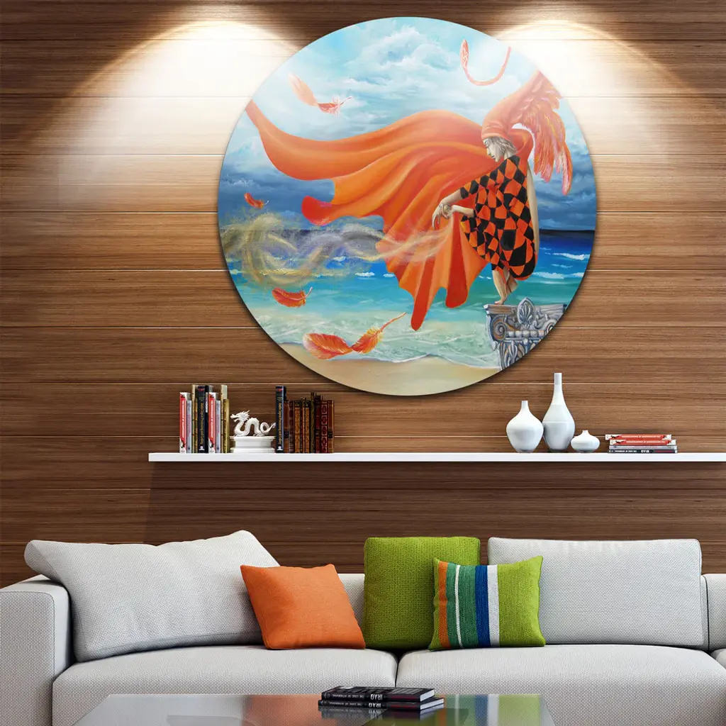 Wind Blows All, Abstract Digital Art Round Metal Wall Art, 36"