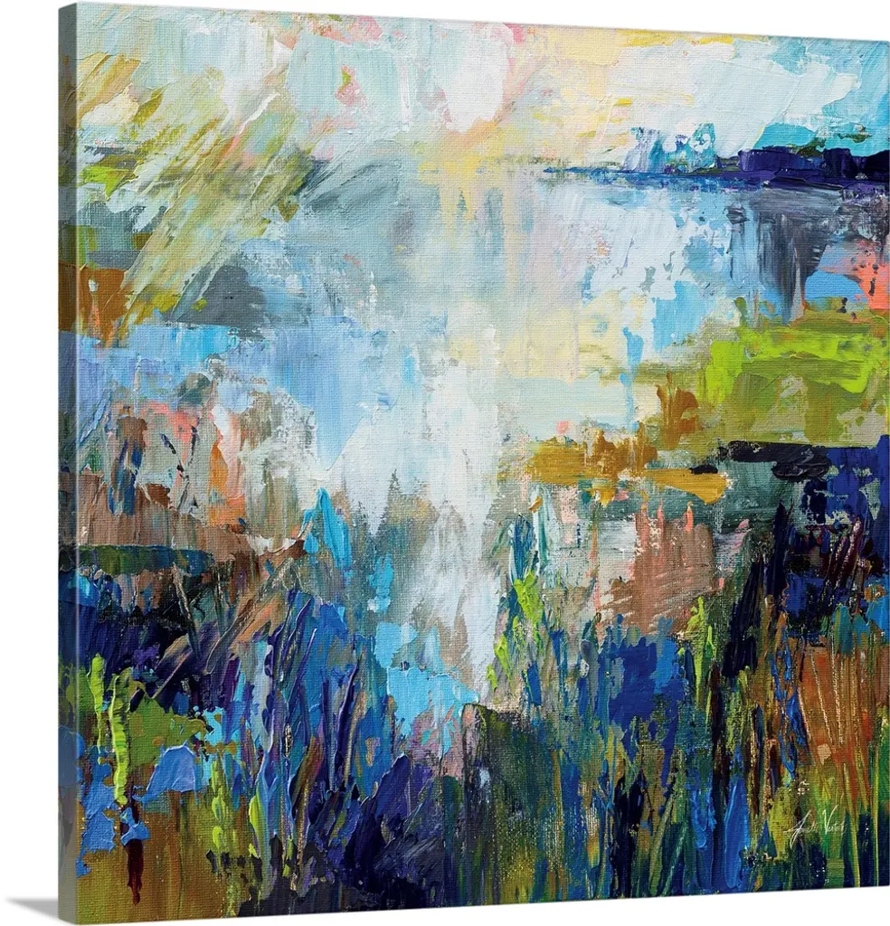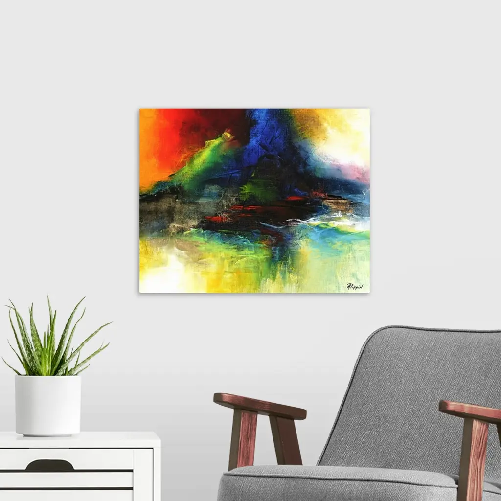 Contemporary abstract painting using wild and vibrant splashes of color.