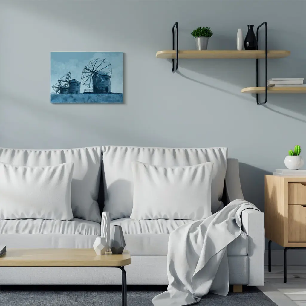 Windmill Farm Blue Farm Landscape Painting, 16"x20"