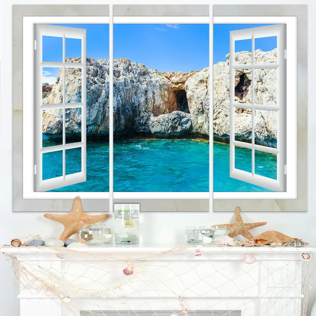 Bring contemporary abstraction to your home with this large 36W x 28H Metal Wall Art. This Window Open to Sunny Summer Sea Metal Artwork makes it the focal point of any room or office. - White gloss coating ensures colors are extra vibrant with light reflection.- Aluminum grade sheet metal with 1-inch mounting frame on the back giving the illusion that the artwork is floating on the wall.- Mounting brackets are included along with instructions.- High quality digital images are created directly into a glossy aluminum panel producing a stunning and captivating print into the glossy finish of the metal.- Water, fire and scratch resistant HD aluminum panels.- Looks better than any photo paper and guaranteed to last at least 20 years- Easy to clean with a microfiber cloth. Colors are far superior to regular canvas art. - Easy to hang