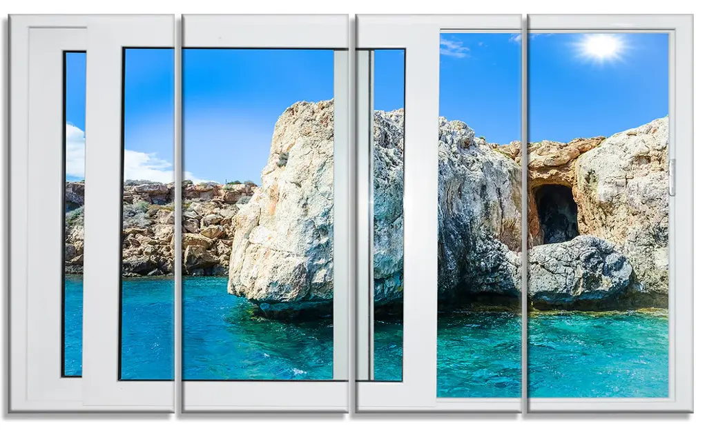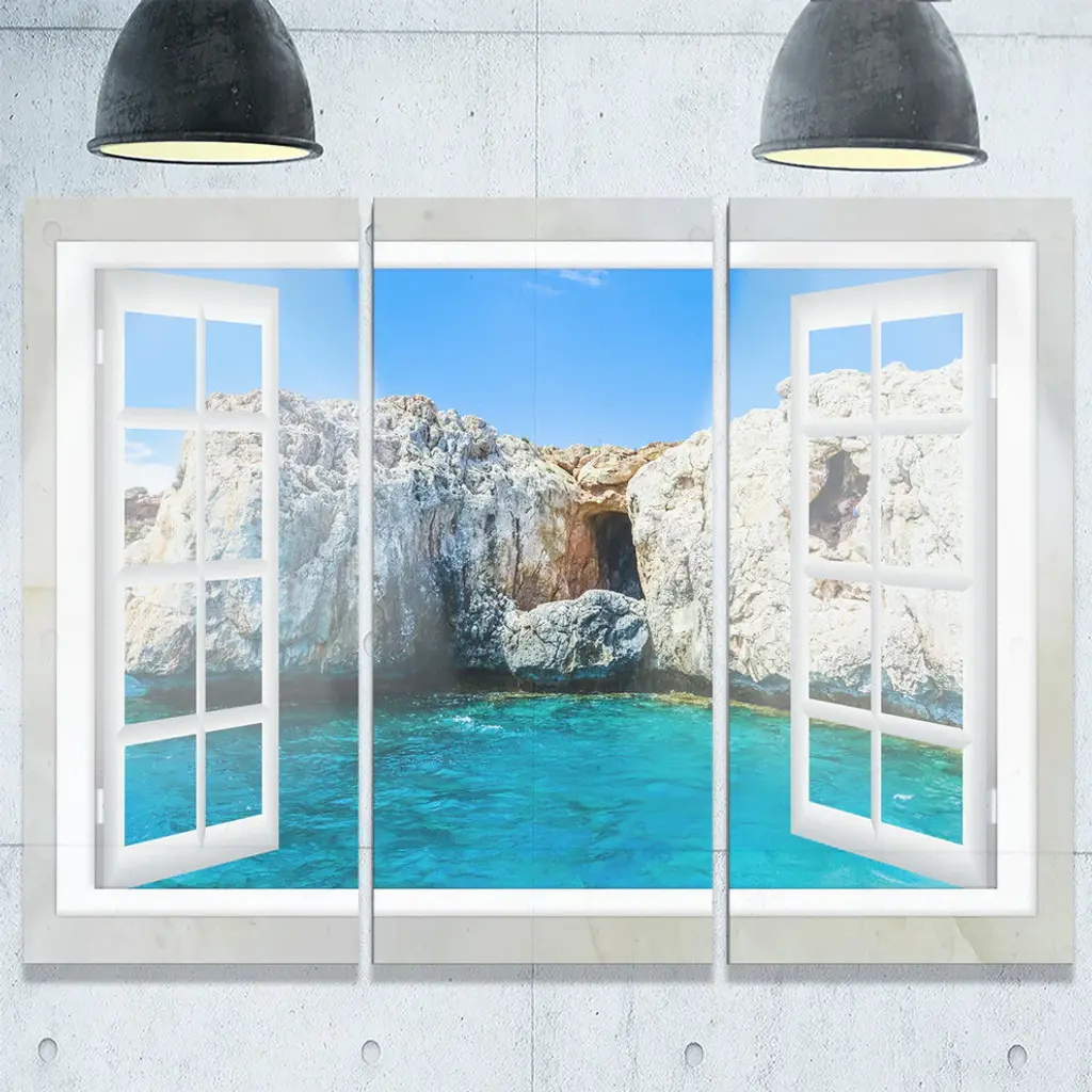 "Window Open To Sunny Summer Sea" Metal Wall Art, 3 Panels, 36"x28"