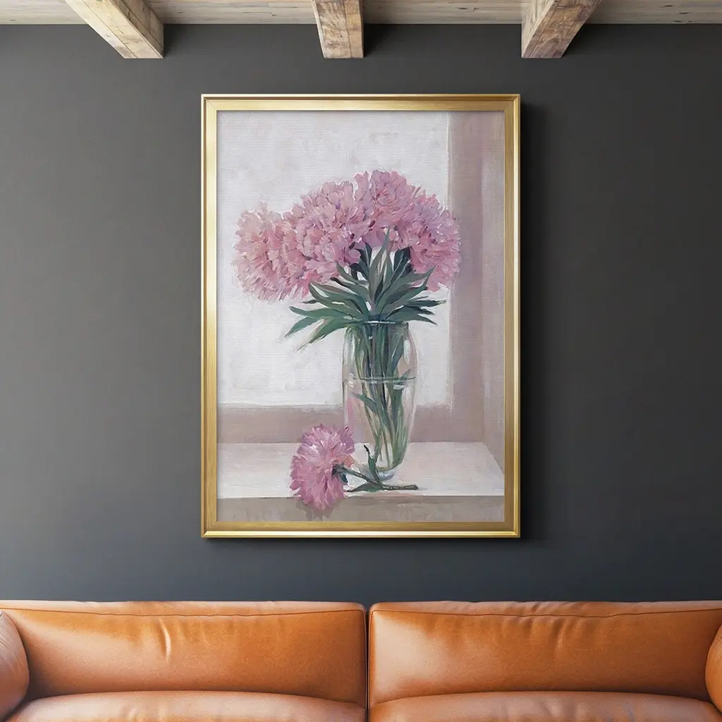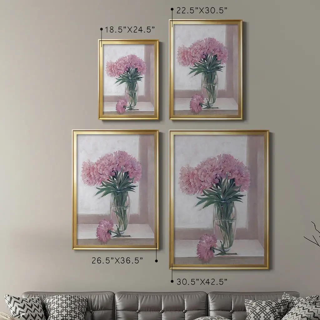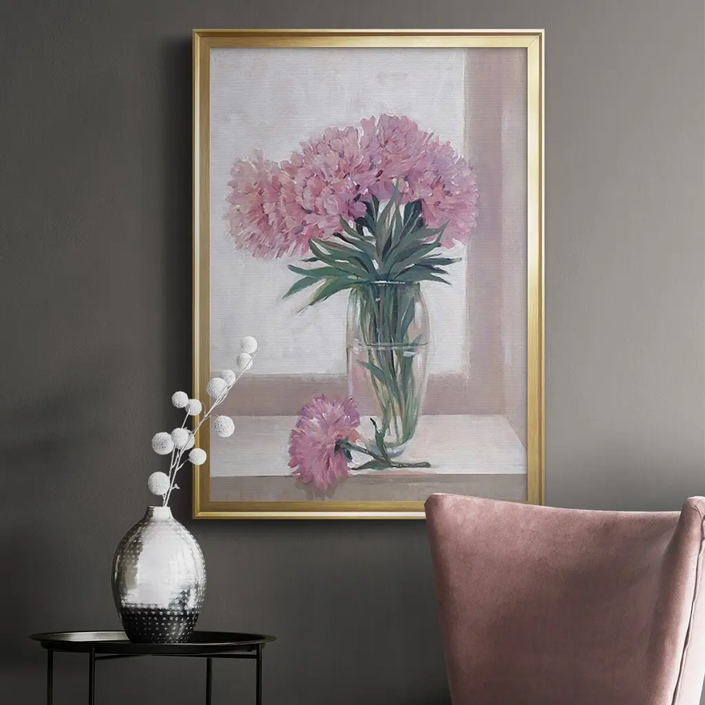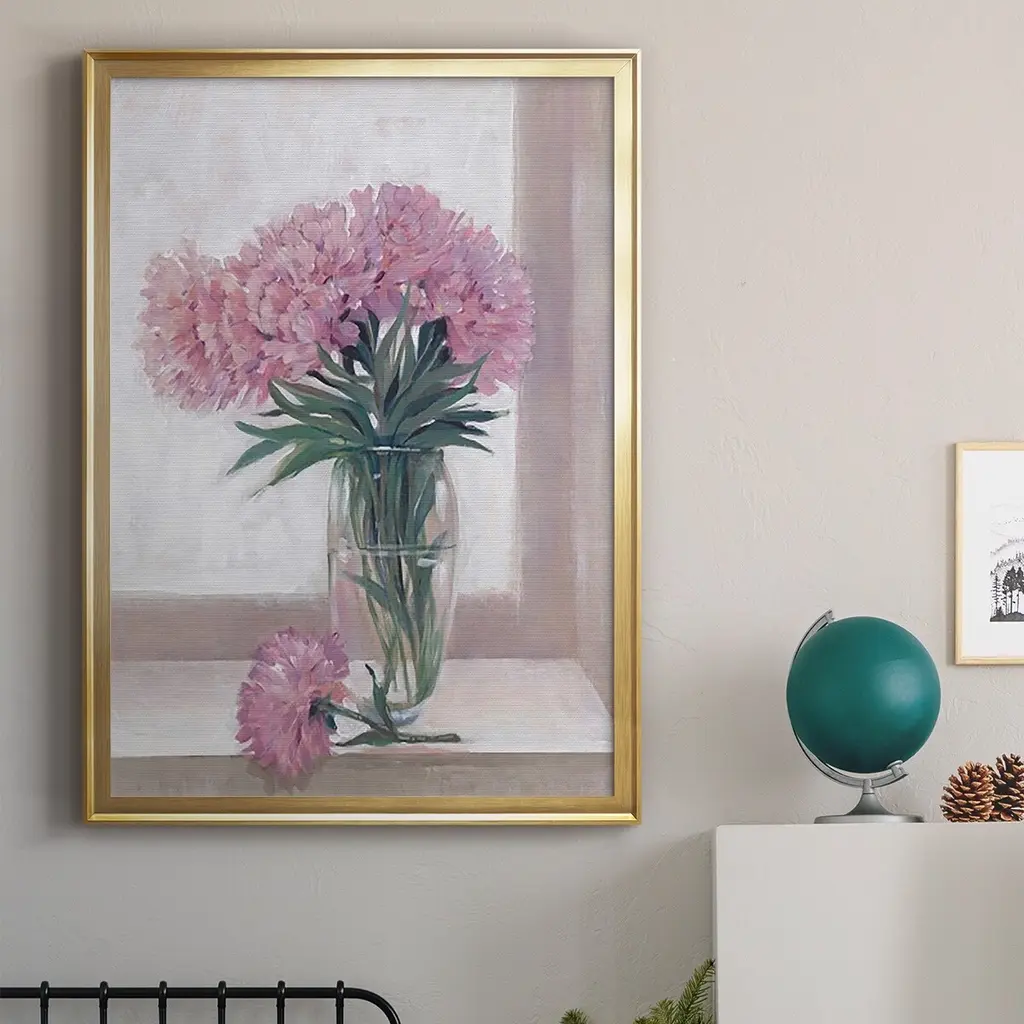 Windowsill Floral I Premium Framed Print - Ready to Hang A Premium Framed Print created to last. Framed in distressed wood and available in an array of sizes and colors Featuring a beveled a solid wood stretcher bar, each piece comes ready to hand 4 SIZES AVAILABLE 30.5''X42.5'' - Overall Size 26.5'X36.5'' - Overall Size 22.5''x30.5'' - Overall Size 18.5''x24.5'' - Overall Size Each piece is made to order. Each piece comes with hanging hardware. Made in the USA Ready to Hang