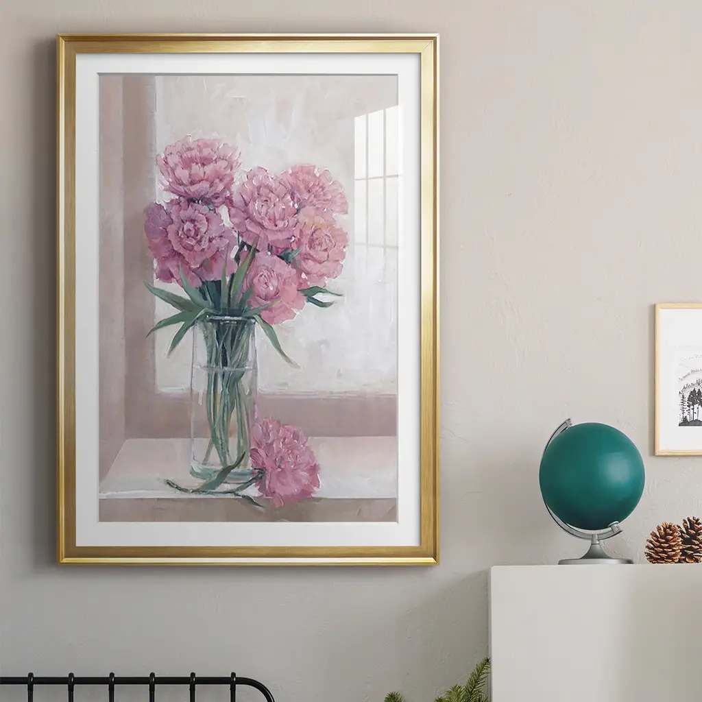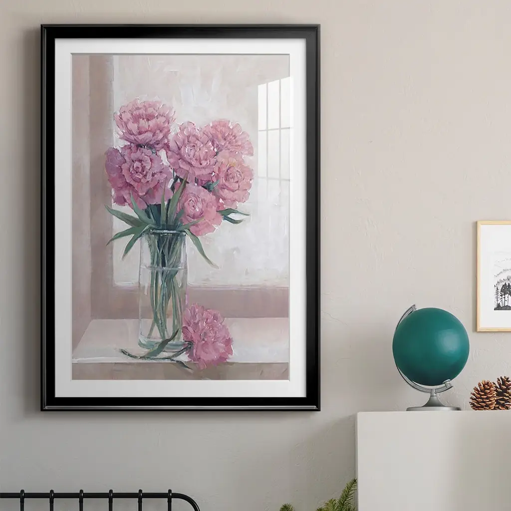 Windowsill Floral II Premium Framed Print - Ready to Hang A Premium Framed Print created to last. Framed in distressed wood and available in an array of sizes and colors Featuring a beveled a solid wood stretcher bar, each piece comes ready to hand 4 SIZES AVAILABLE 30.5''X42.5'' - Overall Size 26.5'X36.5'' - Overall Size 22.5''x30.5'' - Overall Size 18.5''x24.5'' - Overall Size Each piece is made to order. Each piece comes with hanging hardware. Made in the USA Ready to Hang Giclee Paper Print Acrylic Glass Beveled Matt Board