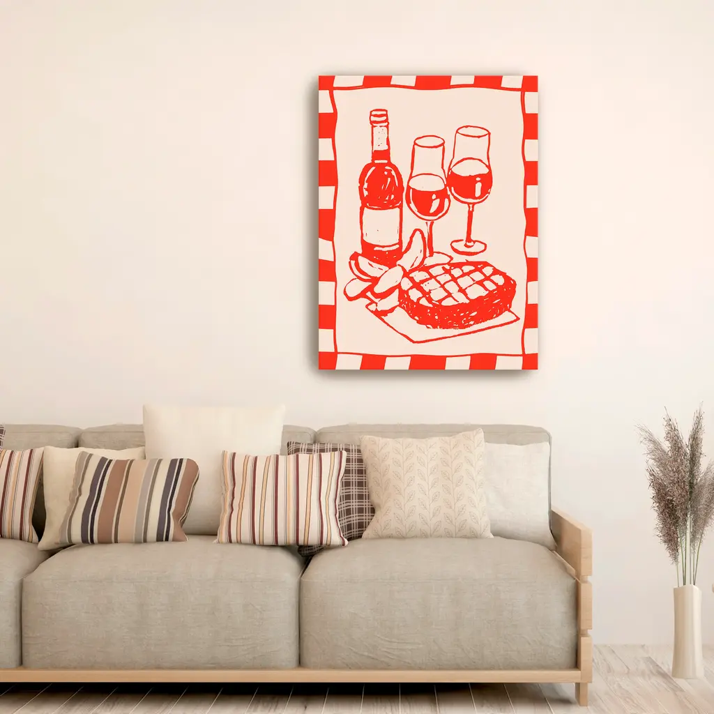 Wine And Steak Canvas Giclee - Wrapped Canvas / None / 30x40