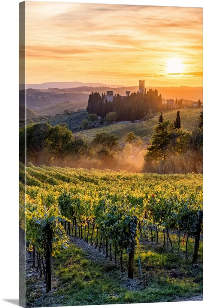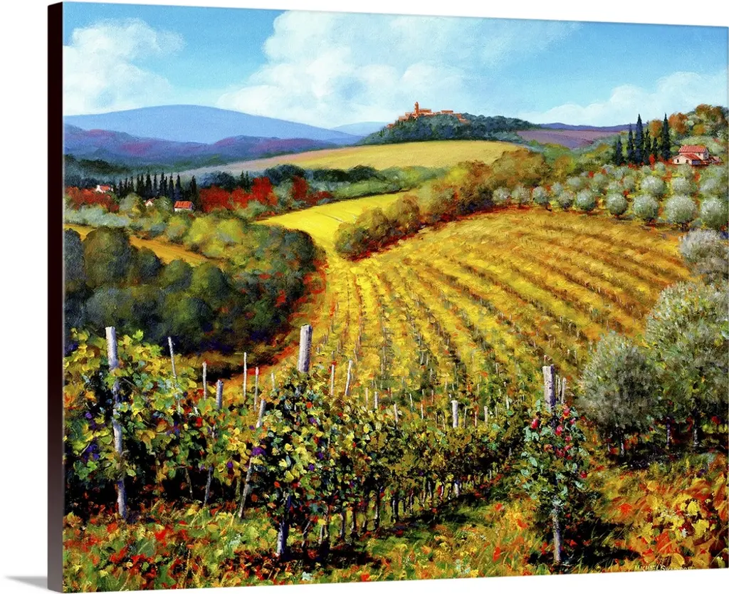 In this painting, vast ranges of greens and yellows dapple this homely landscape of a Tuscan countryside.