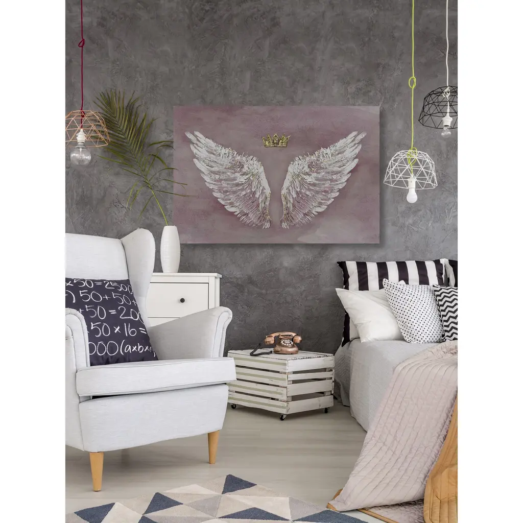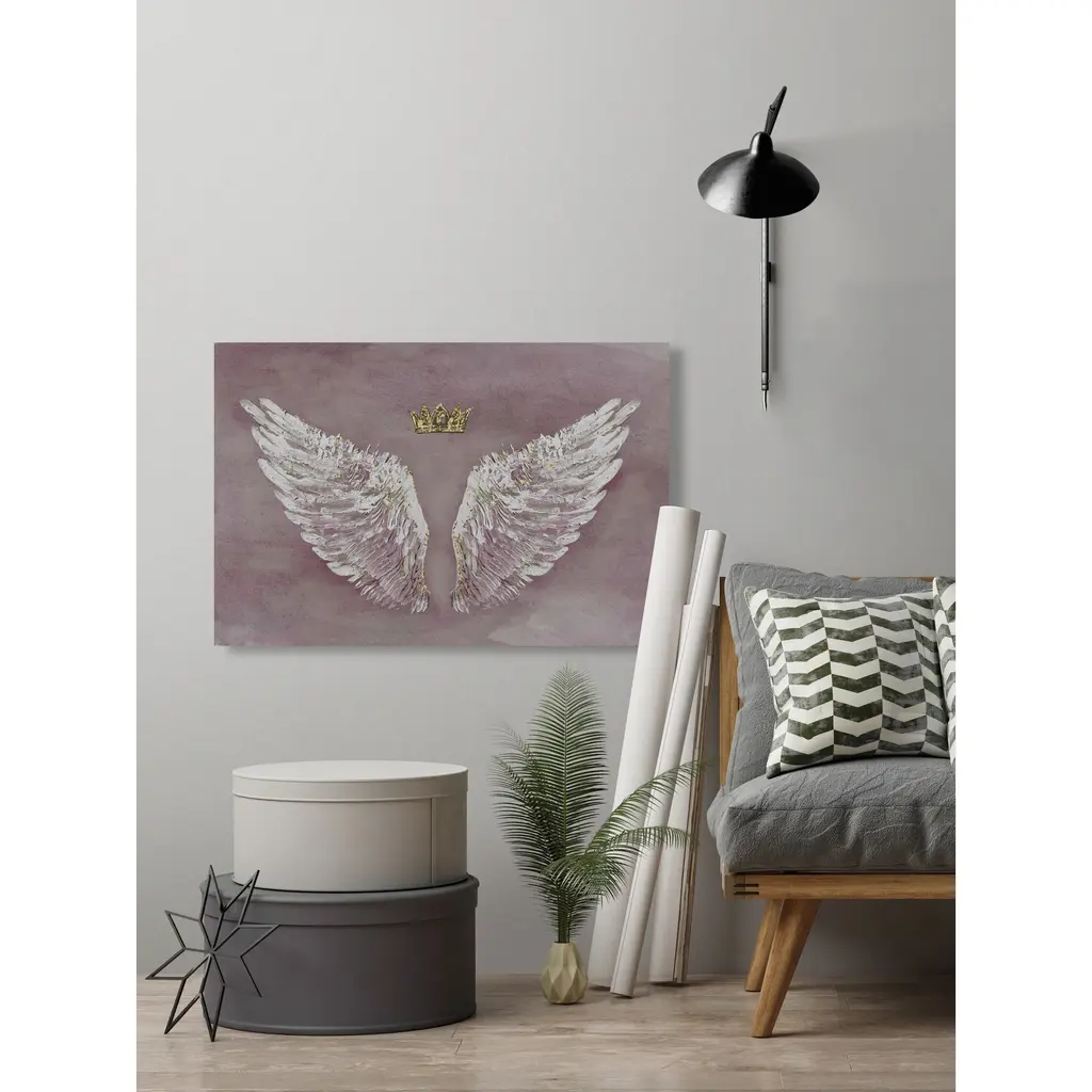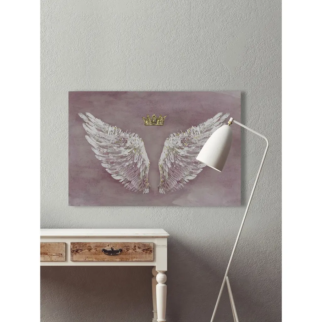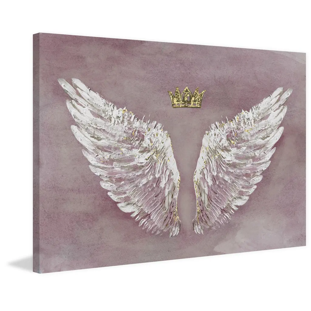 Decorate your space like royalty with this outstanding print of white and pink angel wings and a gold crown on top. Featuring a mauve backdrop that's sure to complement any interior style. Proudly made in the USA, this piece is printed on canvas before it's stretched over non-warping wooden bars for a gallery-wrapped look. With wall-mounting hooks included, this artful accent is ready to hang up as soon as it reaches your front door. • Fine art canvas print from the Marmont Hill Art Collective • Professionally hand stretched • Gallery wrapped in sustainable, non-warping wood • Arrives ready to hang • Made in the USA • Includes a certificate of authenticity