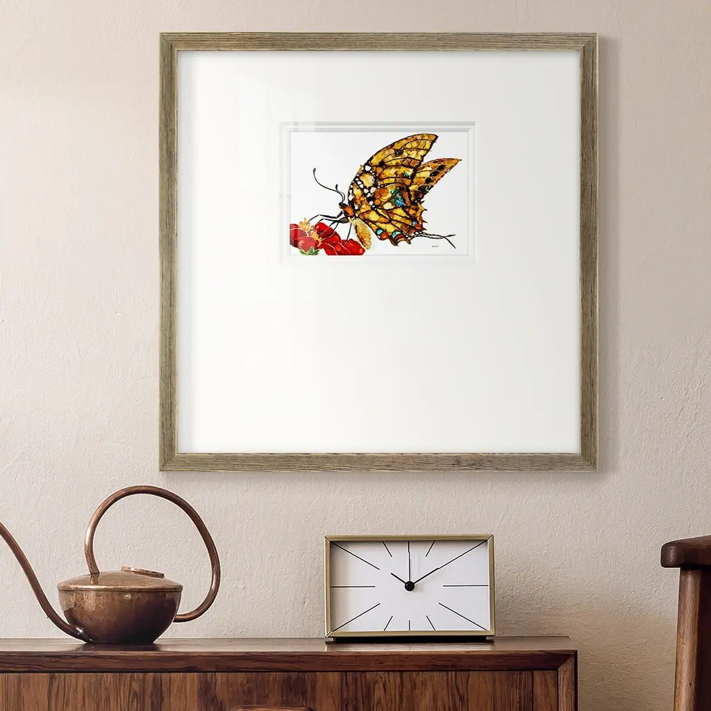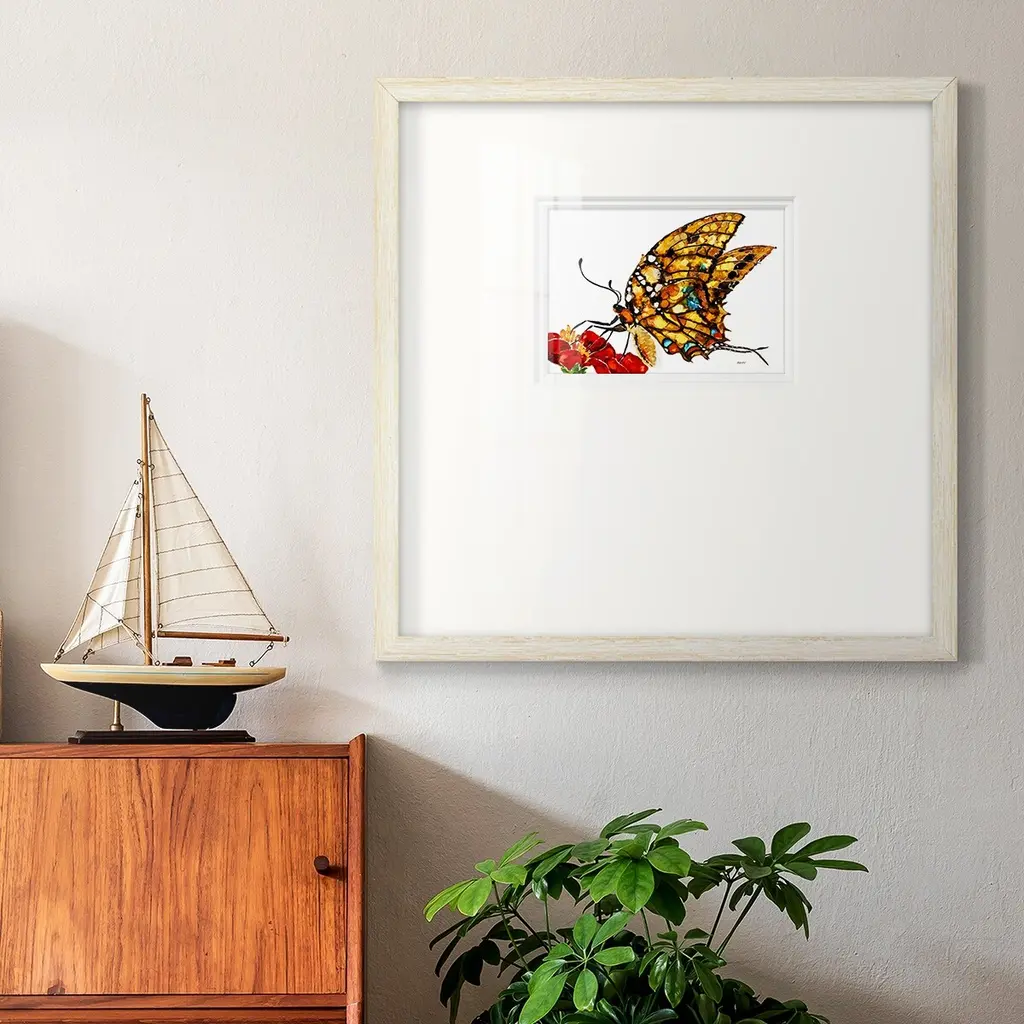 Wings IIPremium Framed Print A framed cold pressed paper print featuring superior double matting and quality frame. 2 SIZES AVAILABLE 16''X16''' - Overall Size 20''X20''' - Overall Size Each piece is made to order. Each piece comes with hanging hardware. Made in the USA Ready to Hang Giclee Paper Print Plexiglass Beveled Matt Board Double Matte Board