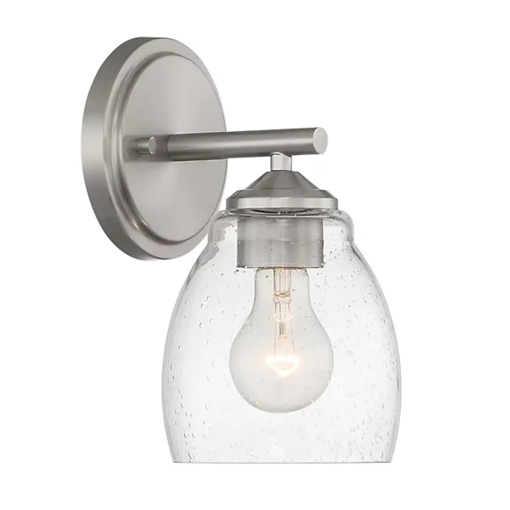 Presented by Minka-Lavery, the Winsley 1-Light Vanity Light is a luxurious luminary that features clean lines and a smooth finish throughout the metalwork. Clear-seeded glass shading around the lamp fixture provides further visual interest while the light diffuses through it to provide a pleasant illumination experience for those in the vicinity.