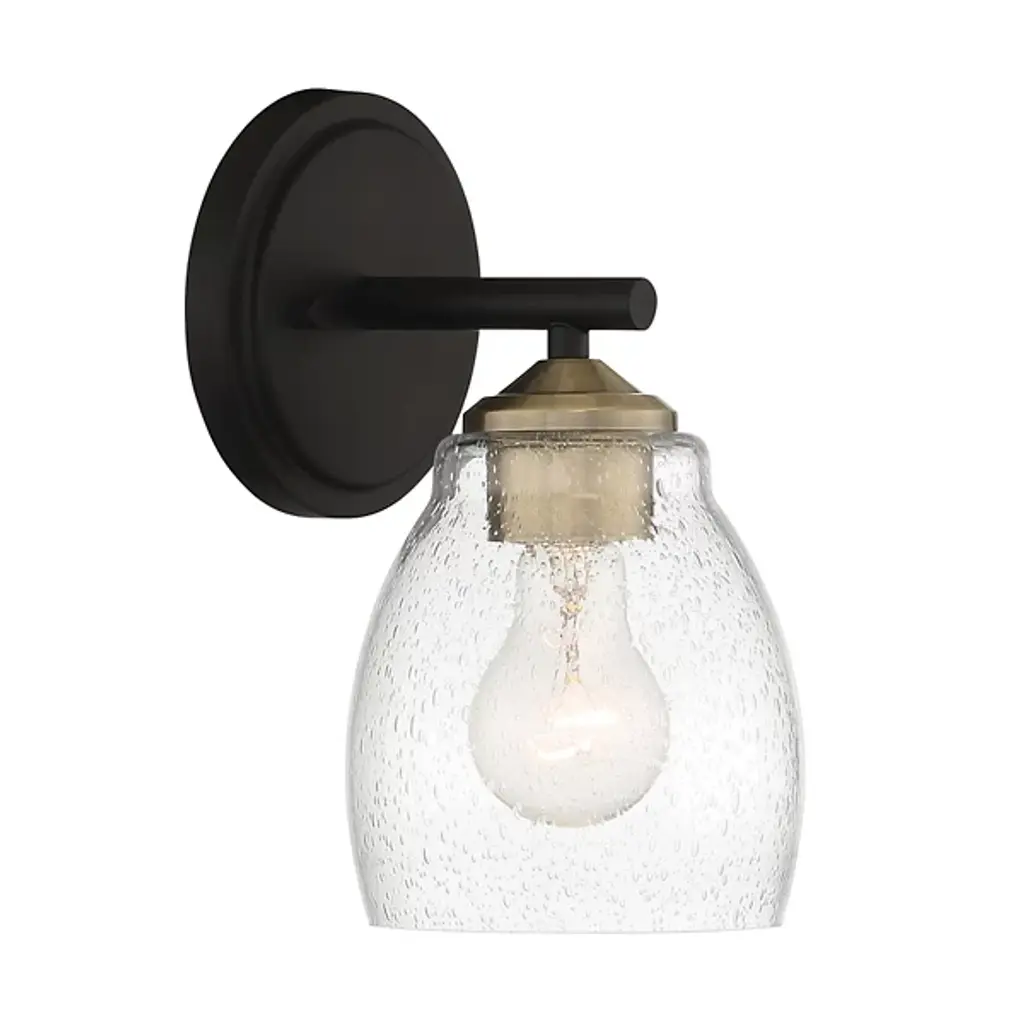 Presented by Minka-Lavery, the Winsley 1-Light Vanity Light is a luxurious luminary that features clean lines and a smooth finish throughout the metalwork. Clear-seeded glass shading around the lamp fixture provides further visual interest while the light diffuses through it to provide a pleasant illumination experience for those in the vicinity.