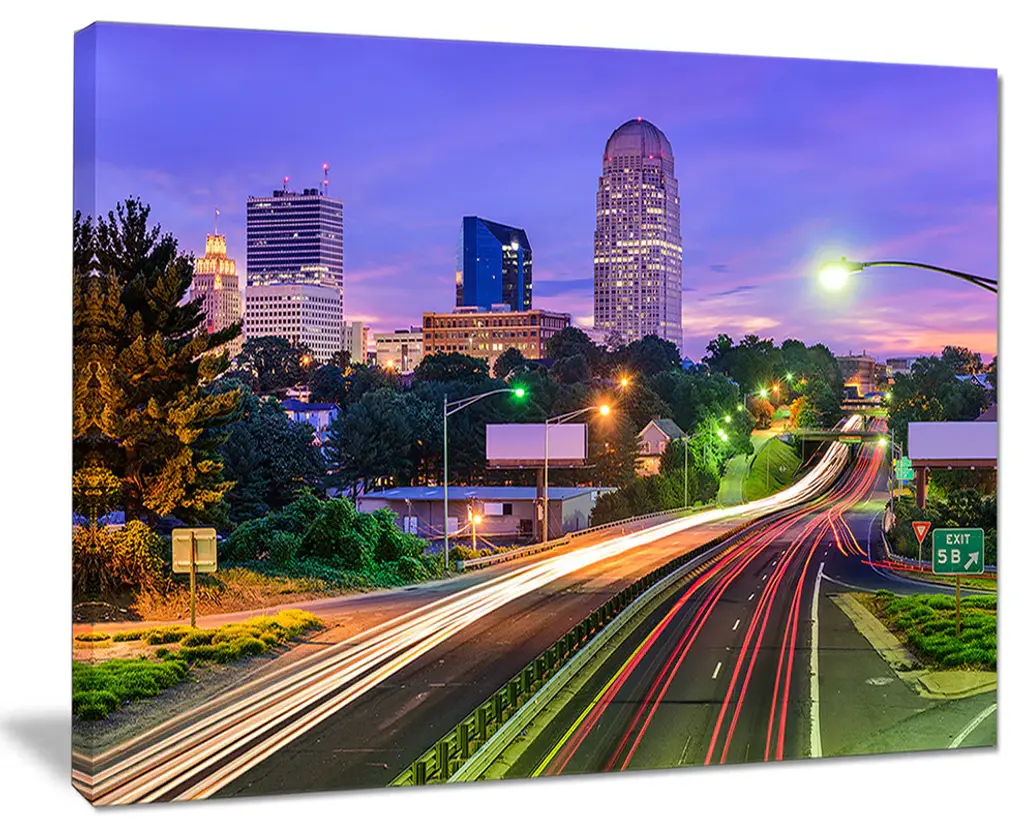 The Winston Salem North Carolina canvas art print is sure to make an impression on anyone who sees it. This artwork is gallery wrapped around a 1-inch solid wood frame and arrives carefully packaged and entirely ready to hang on the wall. Design Art only uses the highest resolution and pigments to ensure a crisp colorful print that is never faded or pixelated. This artwork is sure to be a conversation starter in any home or office.