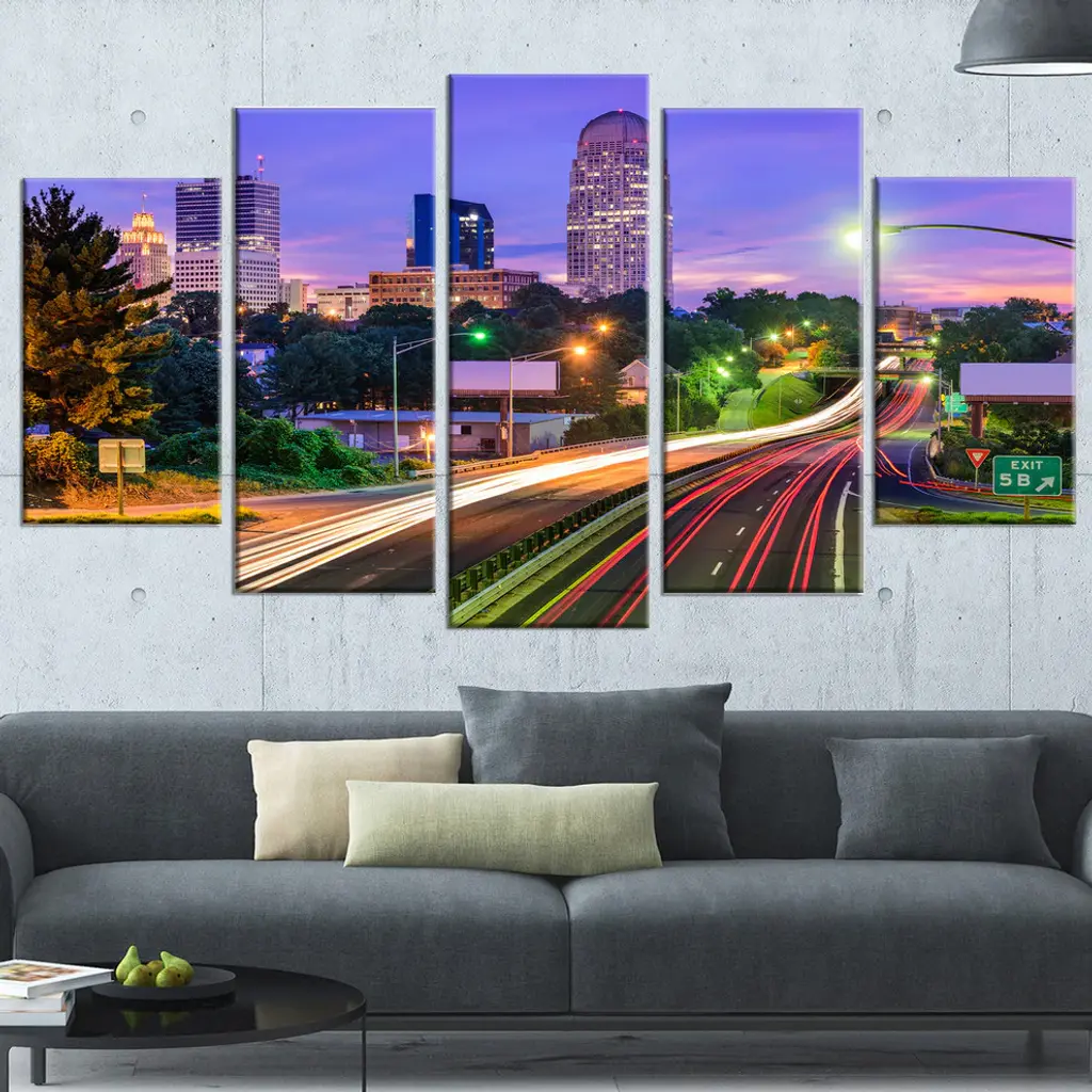 "Winston Salem North Carolina" Canvas Print60"x32", 5-Panels