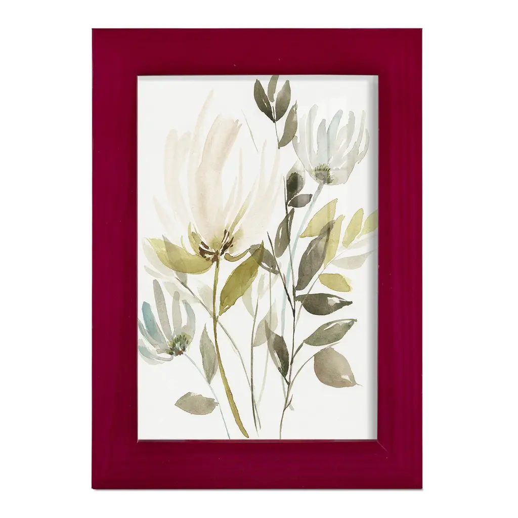 Winter Arrangement I -EZ SWITCH Framed Print w/glass-Cherry Red A delightful, framed print. Featuring a solid wood frame with real wood glass. This premium print is giclee quality. In addition, every frame features a removable back and table top stand. This allows you to change your art in the future or to just stand the art on a table for a new look. We are sure you'll enjoy our new series of EZ SWITCH Framed Art. Solid Wood Frame Real Glass Removable / Replaceable Art Built in Tabletop Stand Sizes range from 4x6 up to 12x15 - buy just one or pair them up as sets as you see fit.