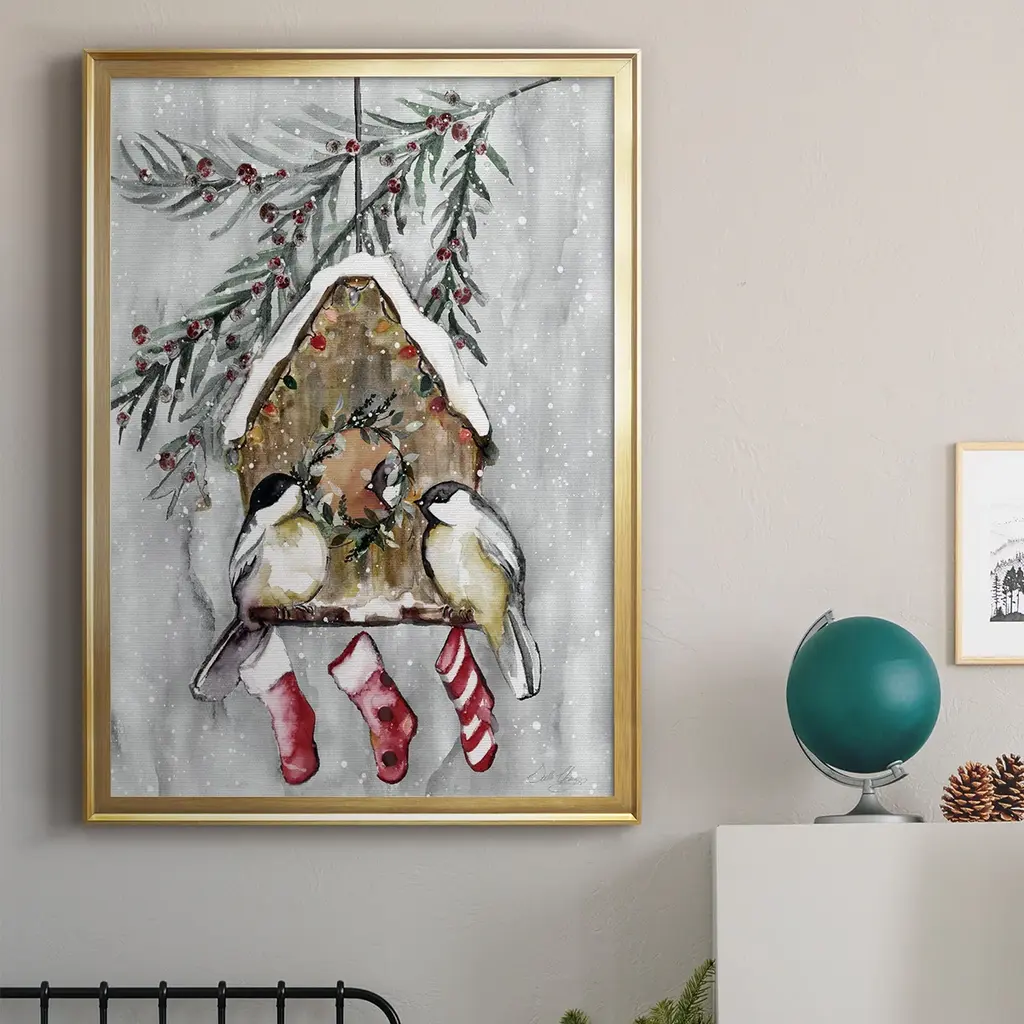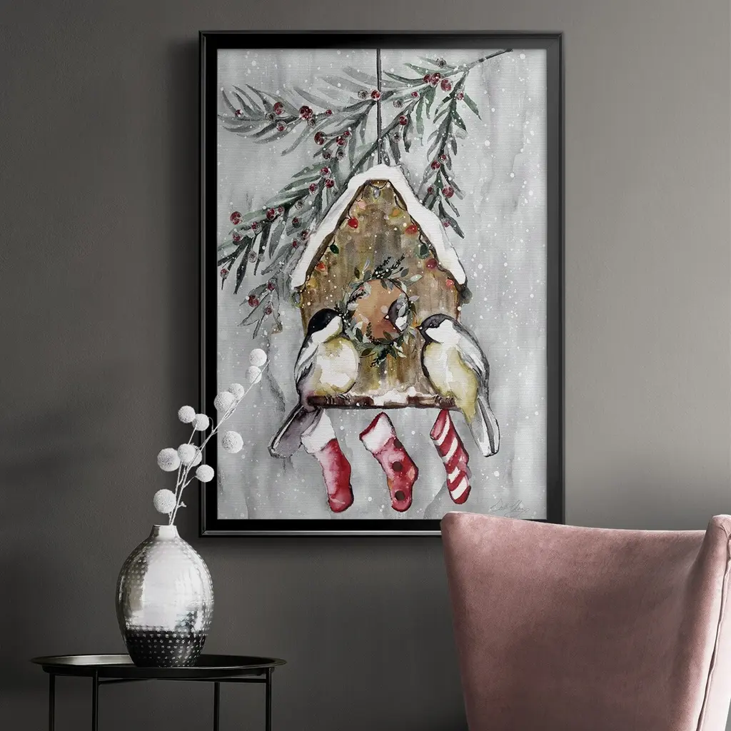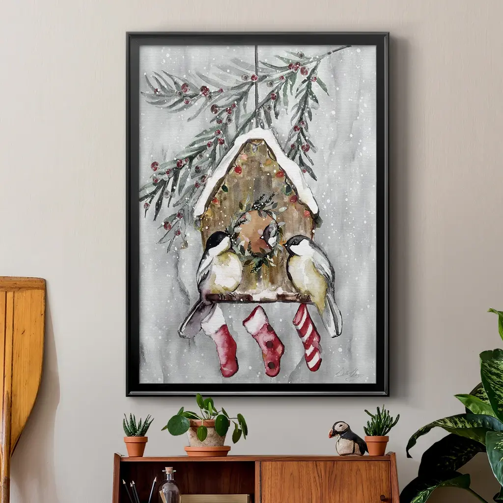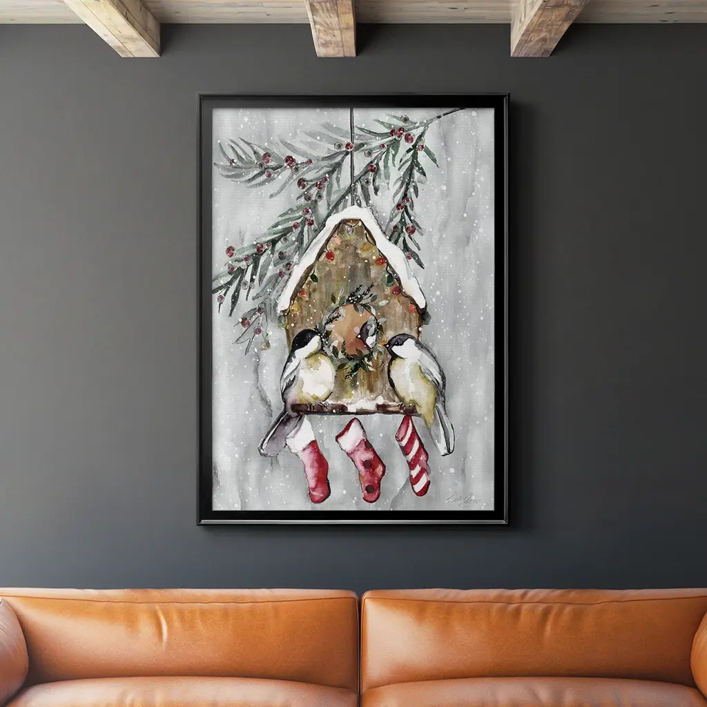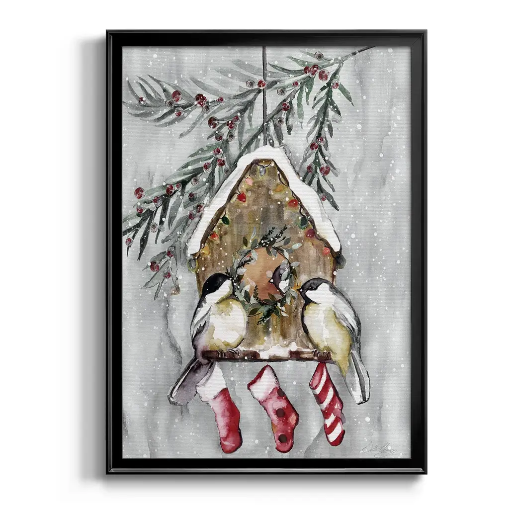 Winter Birds Premium Framed Print - Ready to Hang A Premium Framed Print created to last. Framed in distressed wood and available in an array of sizes and colors Featuring a beveled a solid wood stretcher bar, each piece comes ready to hand 4 SIZES AVAILABLE 30.5''X42.5'' - Overall Size 26.5'X36.5'' - Overall Size 22.5''x30.5'' - Overall Size 18.5''x24.5'' - Overall Size Each piece is made to order. Each piece comes with hanging hardware. Made in the USA Ready to Hang