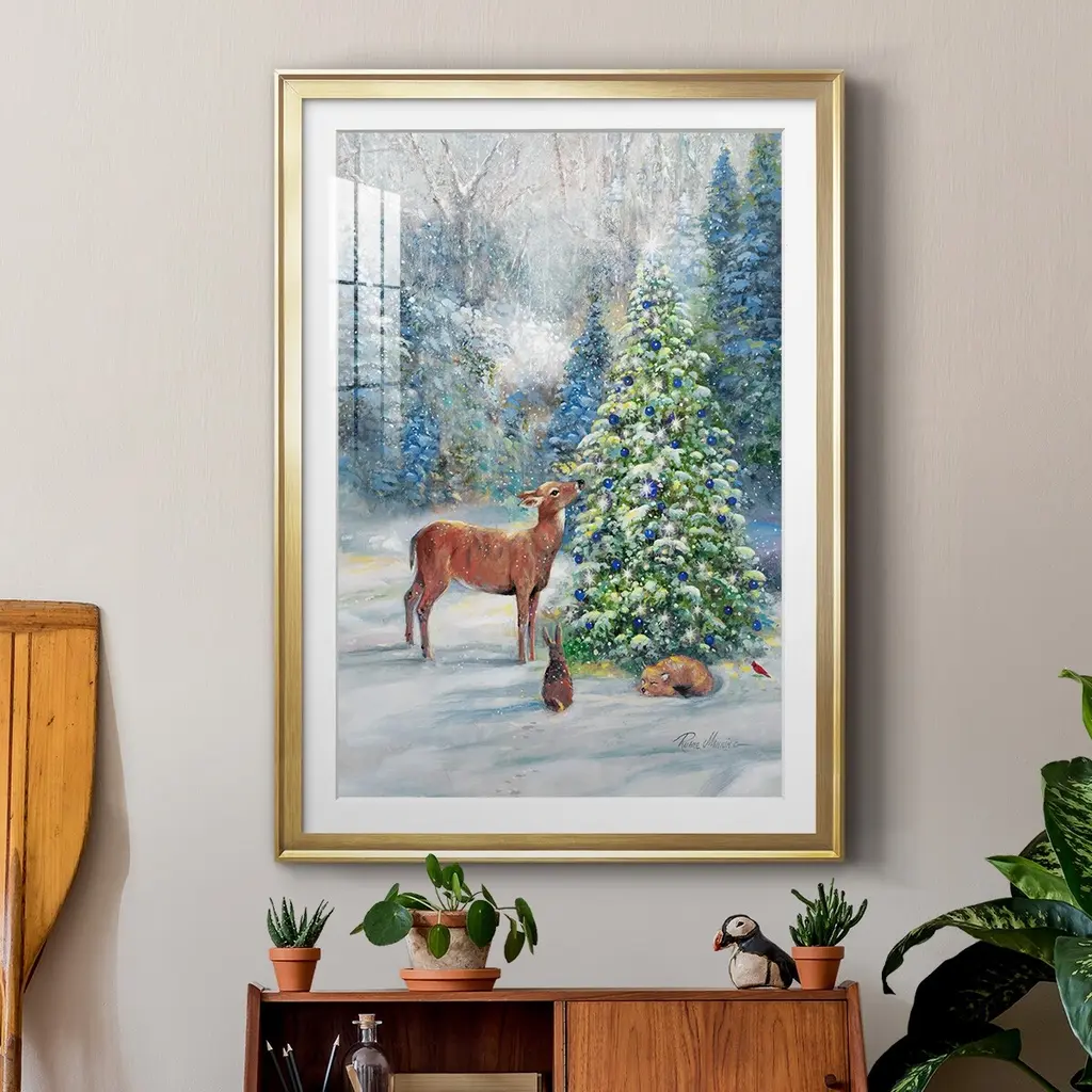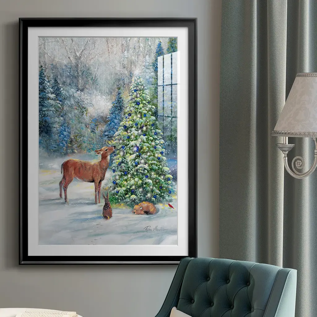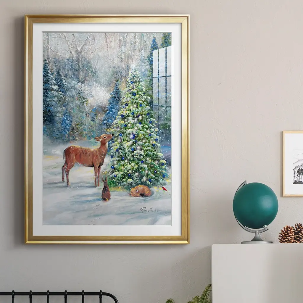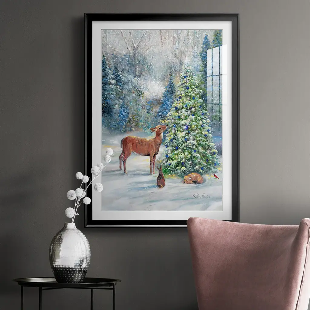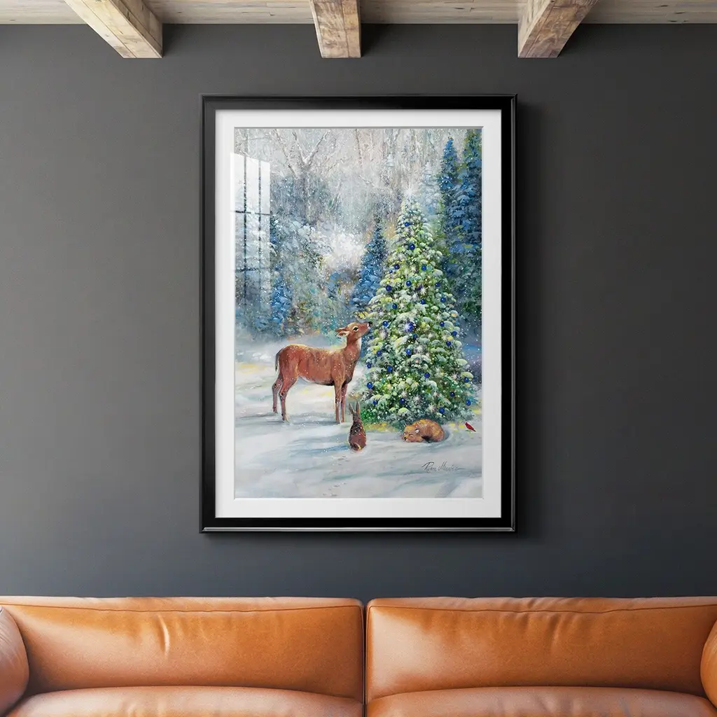 Winter Gathering Premium Framed Print - Ready to Hang A Premium Framed Print created to last. Framed in distressed wood and available in an array of sizes and colors Featuring a beveled a solid wood stretcher bar, each piece comes ready to hand 4 SIZES AVAILABLE 30.5''X42.5'' - Overall Size 26.5'X36.5'' - Overall Size 22.5''x30.5'' - Overall Size 18.5''x24.5'' - Overall Size Each piece is made to order. Each piece comes with hanging hardware. Made in the USA Ready to Hang Giclee Paper Print Acrylic Glass Beveled Matt Board