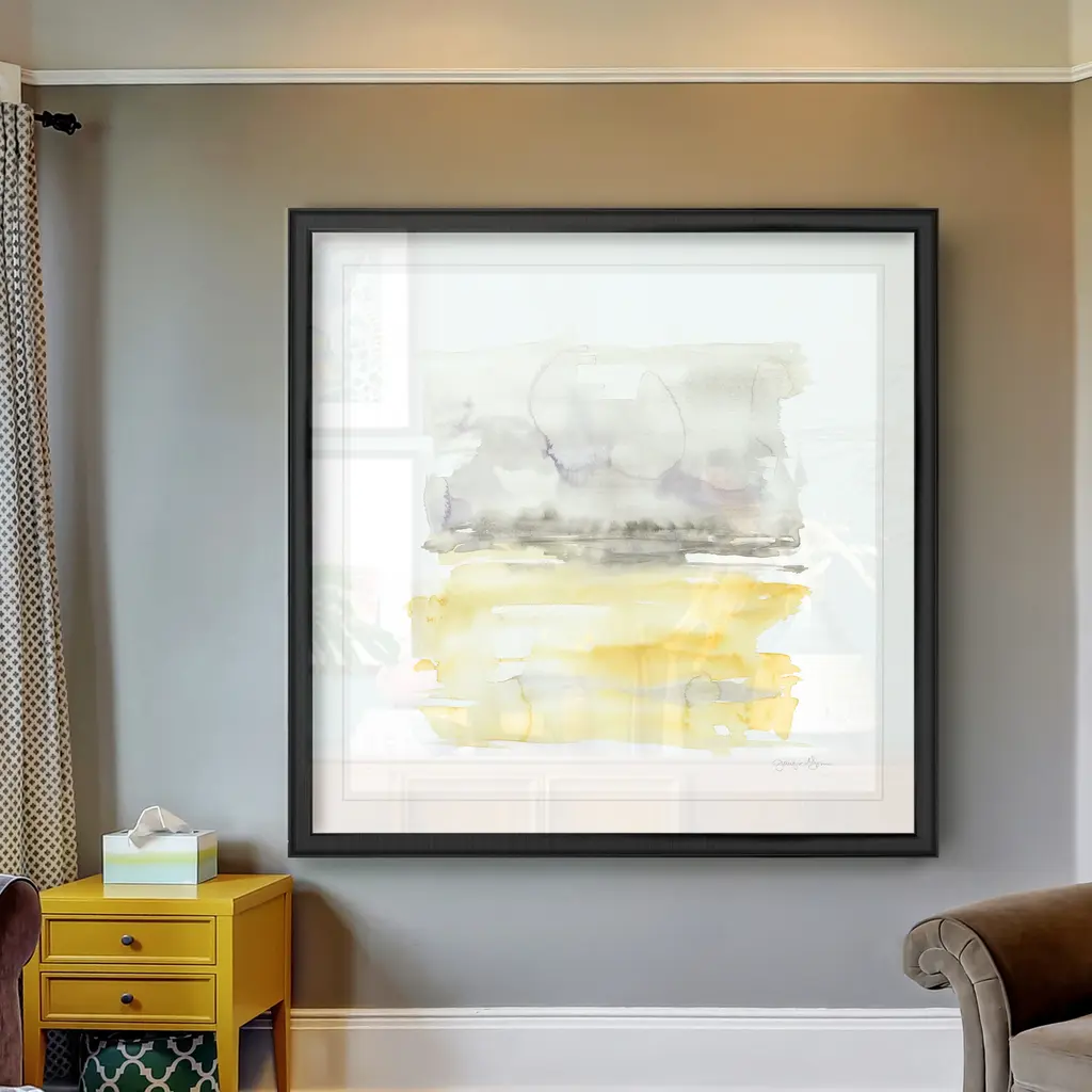 Winter Horizon Line I -Black Framed Print A premium Black Framed giclee print Featuring a beveled a matt , acrylic glass, and a high quality giclee print 5 SIZES AVAILABLE 34''x34''- Overall Size 30''x30'' - Overall Size 26''x26''' - Overall Size 22''x22''' - Overall Size 18''x18''' - Overall Size Each piece is made to order. Built to Last Each piece comes ready to hang Fade and Water resistant Made domestically