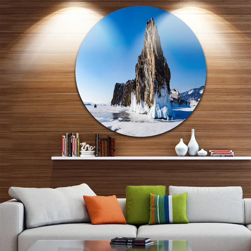 Bring Contemporary Abstraction to your home with this large Circle Metal wall art. This Winter Lake Baikal Panorama Metal Artwork makes it the focal point of any room or office. - White Gloss Coating ensures colors are extra vibrant with light reflection.- Aluminum grade Sheet Metal with 1 inch mounting frame on the back giving the illusion that the artwork is floating on the wall..- Mounting Brackets are included along with instructions.- High Quality Digital images are created directly into a glossy aluminum panel producing a stunning and captivating print into the glossy finish of the metal.- Water, Fire and Scratch resistant HD Aluminum panels.- Looks better than any photo paper and guaranteed to last at least 20 years- Easy to clean with a microfiber cloth. Colors are far superior to regular Canvas Art. - Easy to Hang