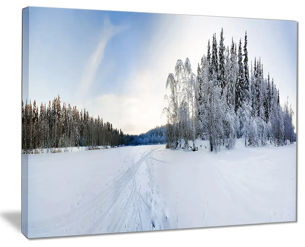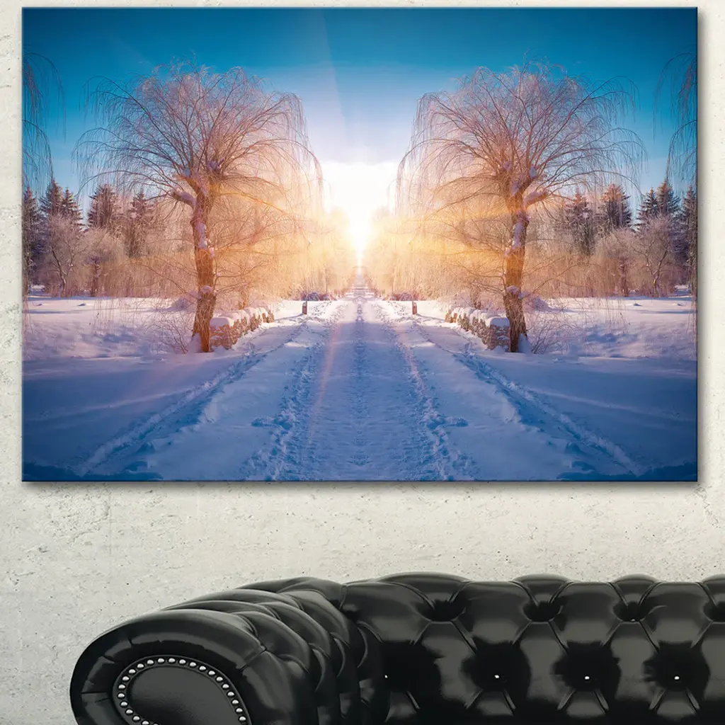 Winter Landscape In City Park, Landscape Canvas Art Print, 60"x28"