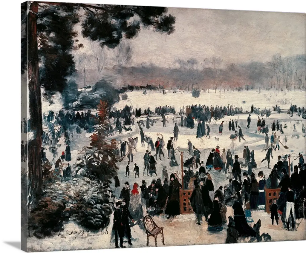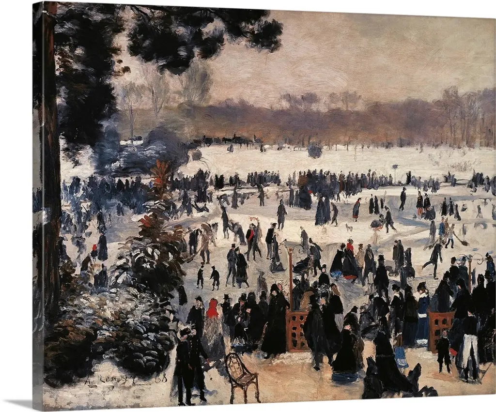 Winter Landscape with Ice Skaters, by Hendrick Avercamp, 1608, Dutch painting, oil on panel. Hundreds of people are out on the ice, for both pleasure and necessity. The painting has details of buildings, people, and animals.
