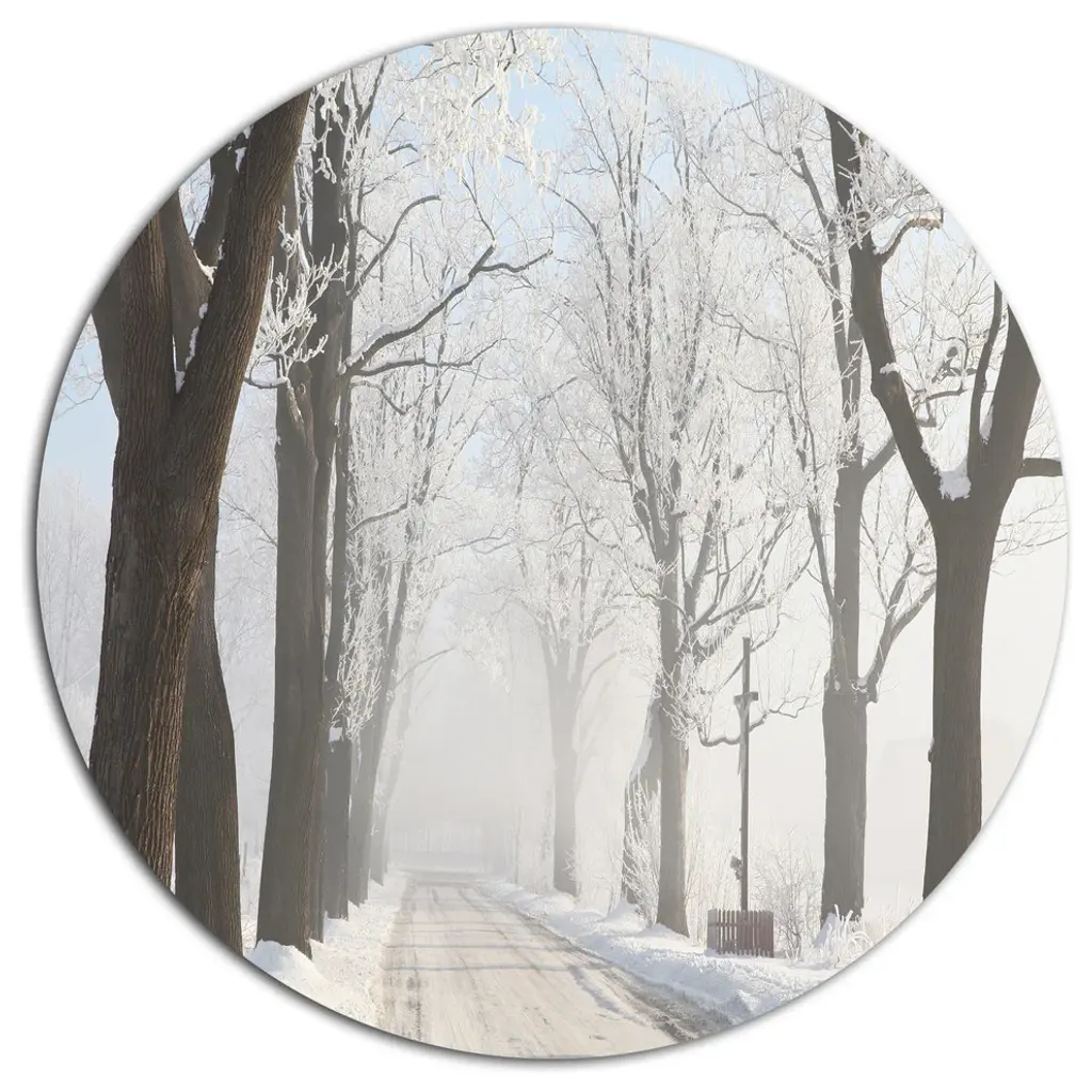 Bring contemporary abstraction to your home with this large 36W x 28H Metal Wall Art. This Winter Lane in Foggy Morning Metal Artwork makes it the focal point of any room or office. - White gloss coating ensures colors are extra vibrant with light reflection.- Aluminum grade sheet metal with 1-inch mounting frame on the back giving the illusion that the artwork is floating on the wall.- Mounting brackets are included along with instructions.- High quality digital images are created directly into a glossy aluminum panel producing a stunning and captivating print into the glossy finish of the metal.- Water, fire and scratch resistant HD aluminum panels.- Looks better than any photo paper and guaranteed to last at least 20 years- Easy to clean with a microfiber cloth. Colors are far superior to regular canvas art. - Easy to hang