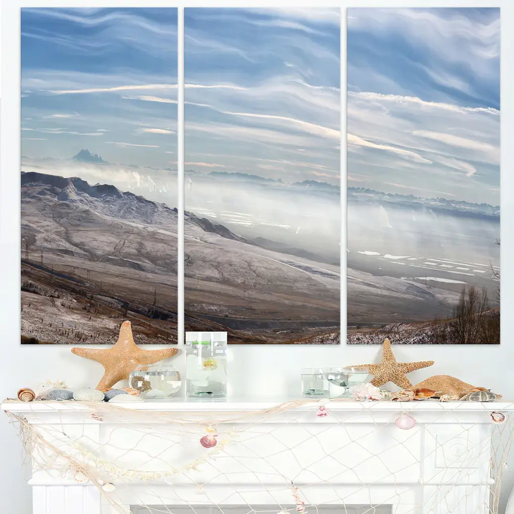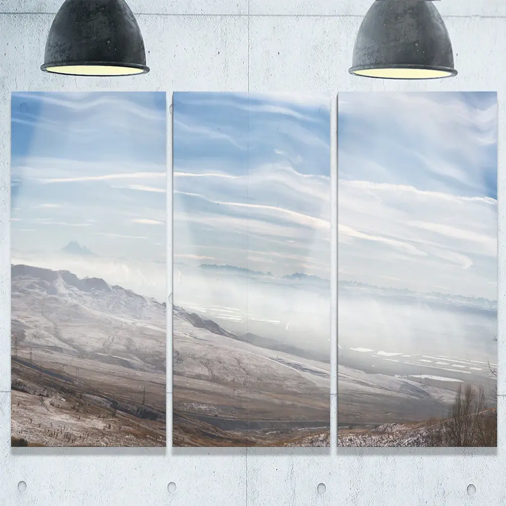 "Winter Mountains In Caucasus" Oversized Beach Metal Wall Art, 3 Panels, 36"x28"
