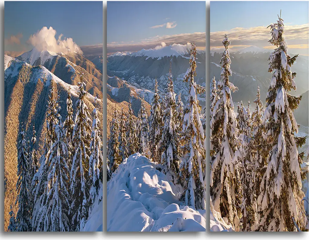 "Winter Mountains Panorama" Photography Canvas Print, 3 Panels, 36"x28"