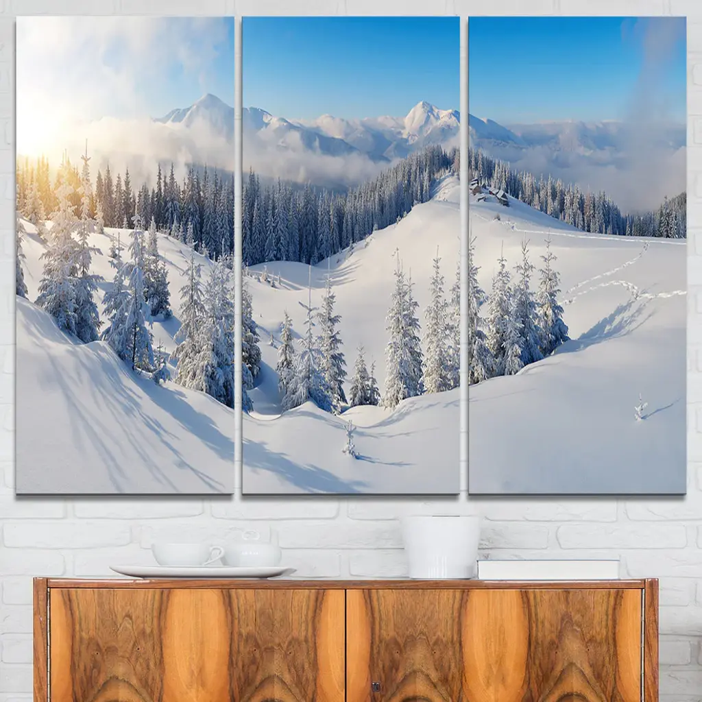 The Winter Mountains Panorama canvas art print is sure to make an impression on anyone who sees it. This artwork is gallery wrapped around a 1-inch solid wood frame and arrives carefully packaged and entirely ready to hang on the wall. Design Art only uses the highest resolution and pigments to ensure a crisp colorful print that is never faded or pixelated. This artwork is sure to be a conversation starter in any home or office.