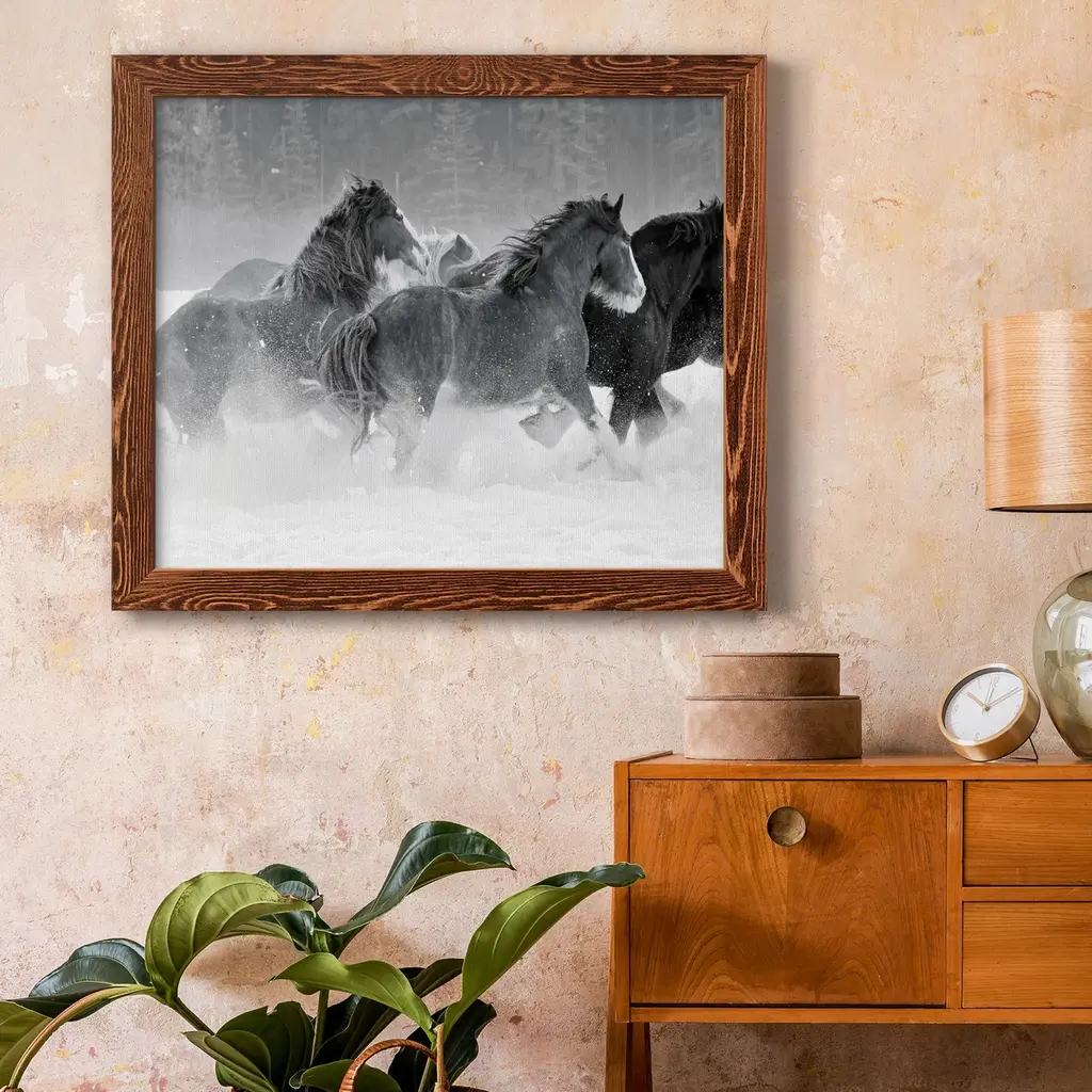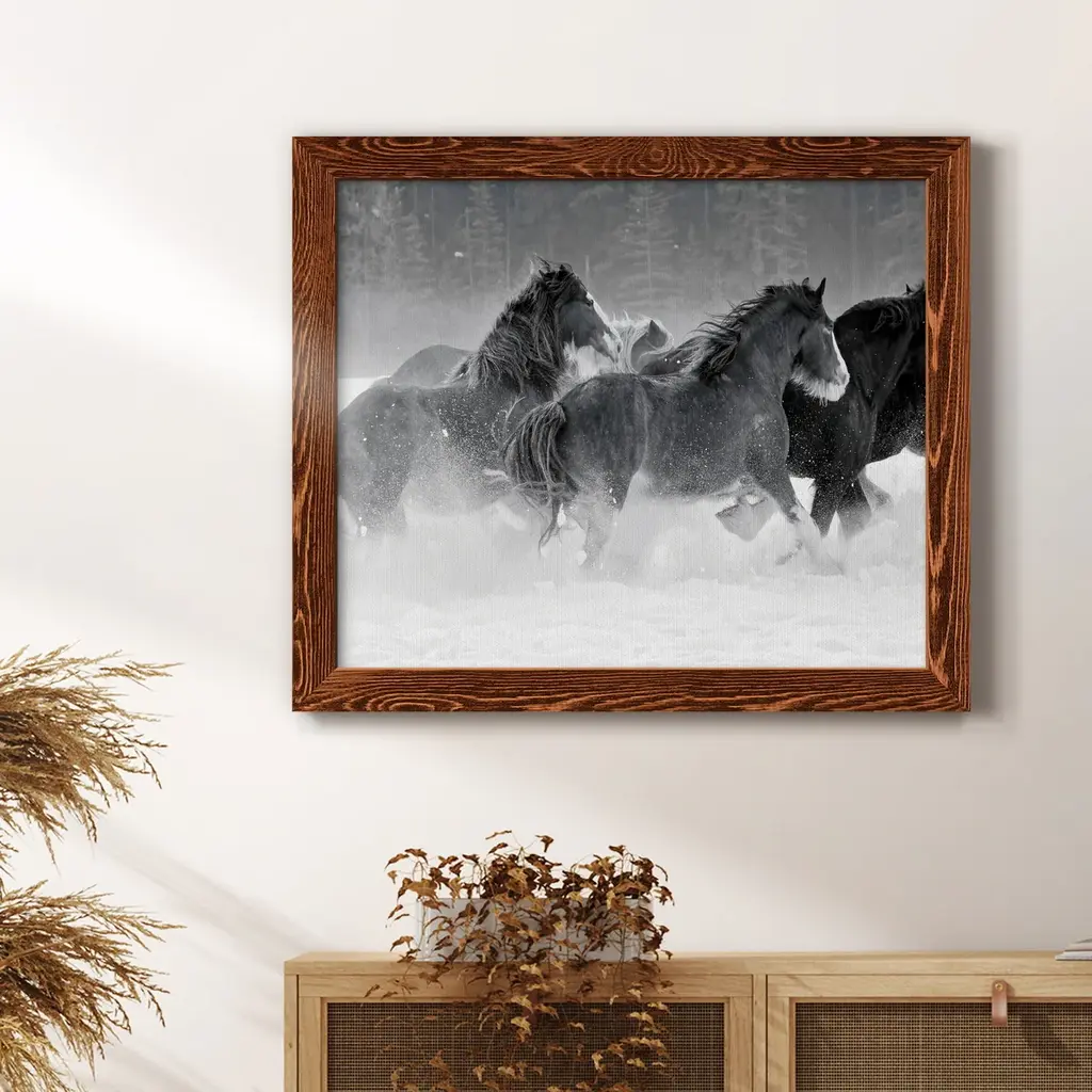 Winter Roundup I-Premium Framed Canvas - Ready to Hang Framed in distressed wood and available in an array of sizes and colors Each piece is joined and assembled by hand and comes ready to hang FRAMED CANVAS GICLEE READY TO HANG MADE IN THE USA SOLID WOOD FRAME MADE IN USA FADE RESISTANT GICLEE PRINTING on Canvas