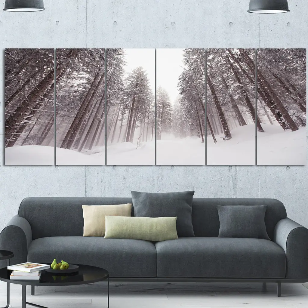 Winter Scenery In Trentino Alto Adige, Forest Canvas Print, 70"x28", 6 Panels