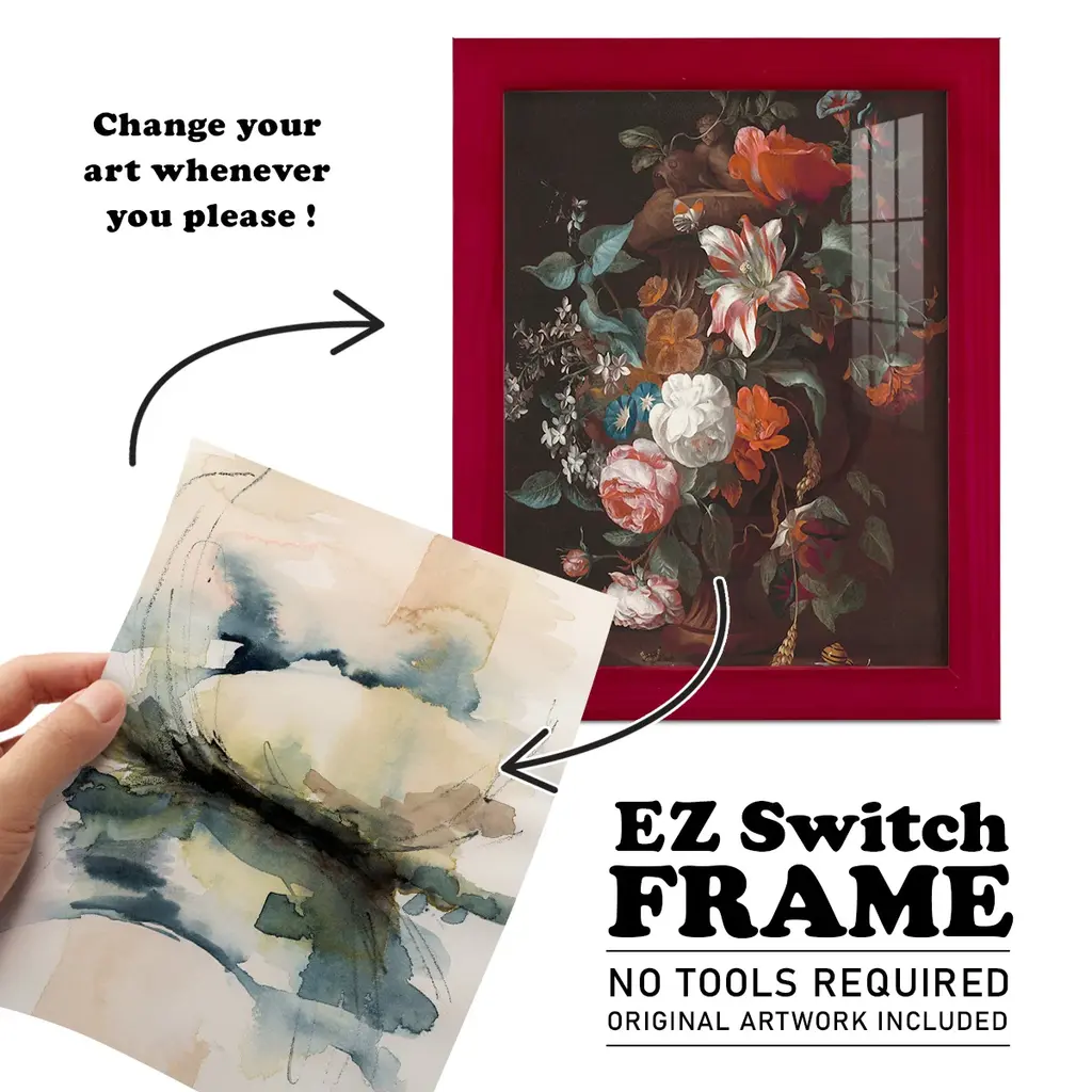 Winter Shoal II -EZ SWITCH Framed Print w/glass-Cherry Red A delightful, framed print. Featuring a solid wood frame with real wood glass. This premium print is giclee quality. In addition, every frame features a removable back and table top stand. This allows you to change your art in the future or to just stand the art on a table for a new look. We are sure you'll enjoy our new series of EZ SWITCH Framed Art. Solid Wood Frame Real Glass Removable / Replaceable Art Built in Tabletop Stand Sizes range from 4x6 up to 12x15 - buy just one or pair them up as sets as you see fit.