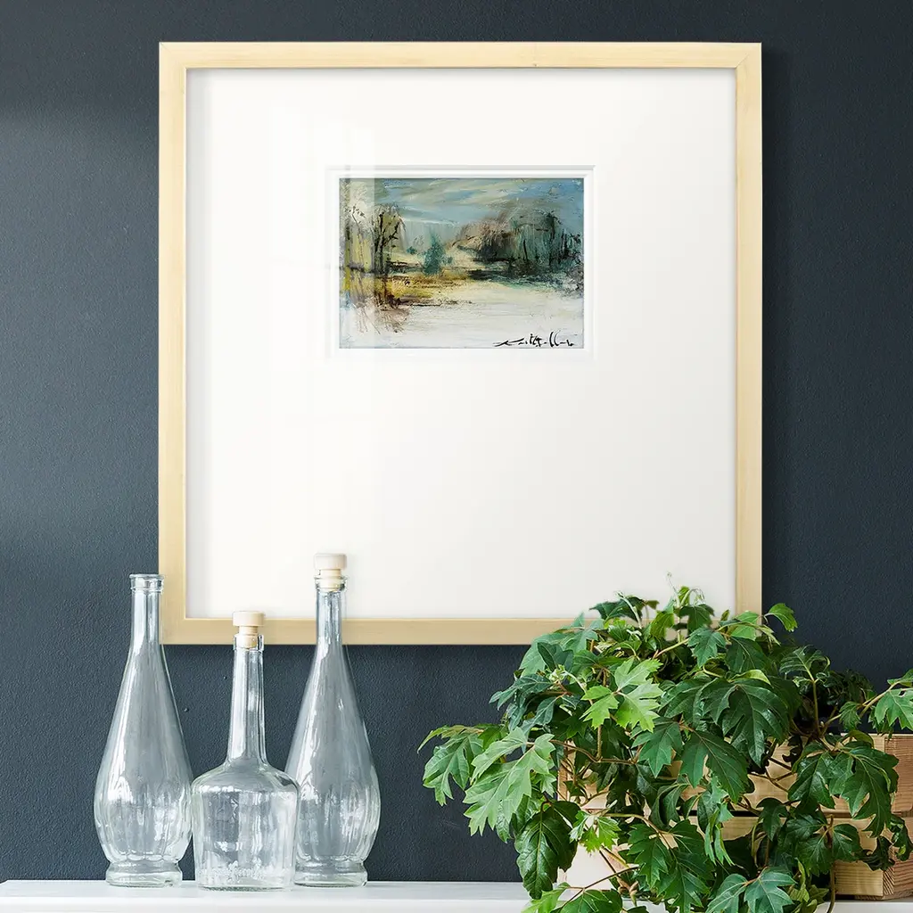 Wintery Horizon IIPremium Framed Print A framed cold pressed paper print featuring superior double matting and quality frame. 2 SIZES AVAILABLE 16''X16''' - Overall Size 20''X20''' - Overall Size Each piece is made to order. Each piece comes with hanging hardware. Made in the USA Ready to Hang Giclee Paper Print Plexiglass Beveled Matt Board Double Matte Board