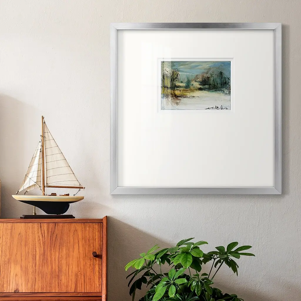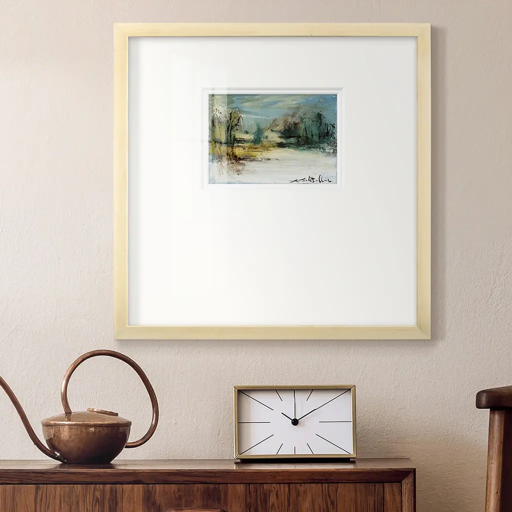 Wintery Horizon IIPremium Framed Print A framed cold pressed paper print featuring superior double matting and quality frame. 2 SIZES AVAILABLE 16''X16''' - Overall Size 20''X20''' - Overall Size Each piece is made to order. Each piece comes with hanging hardware. Made in the USA Ready to Hang Giclee Paper Print Plexiglass Beveled Matt Board Double Matte Board