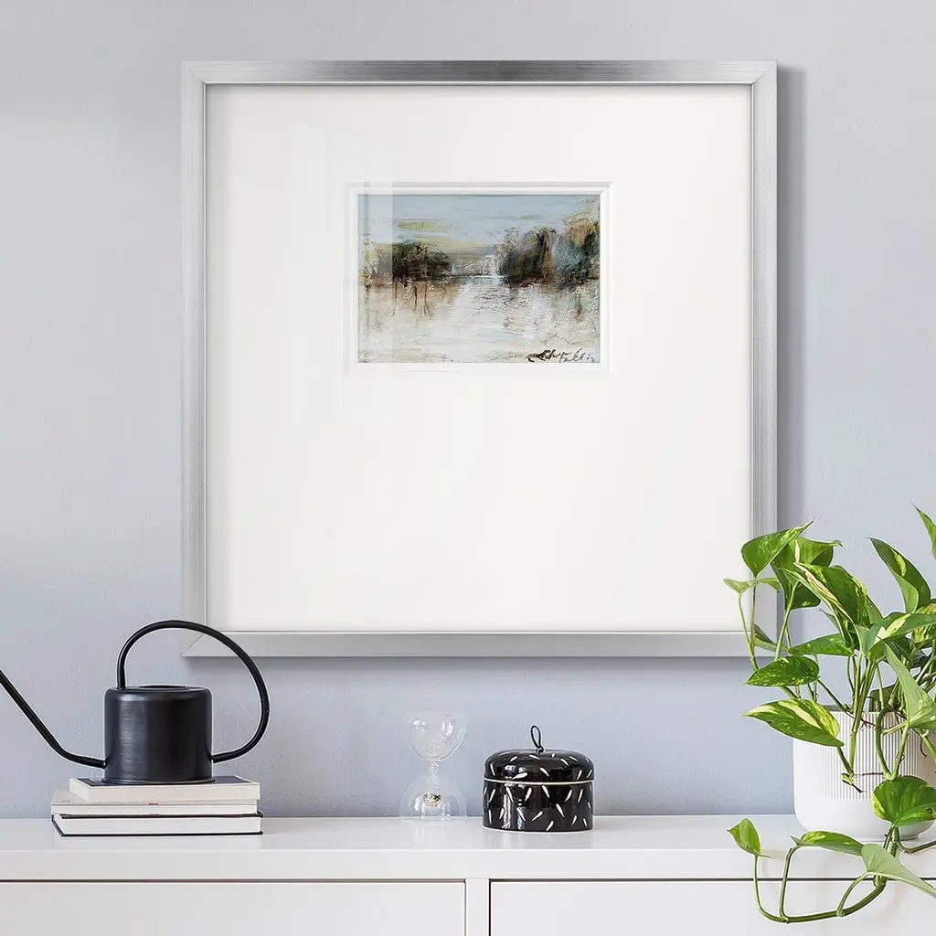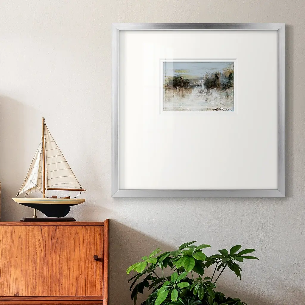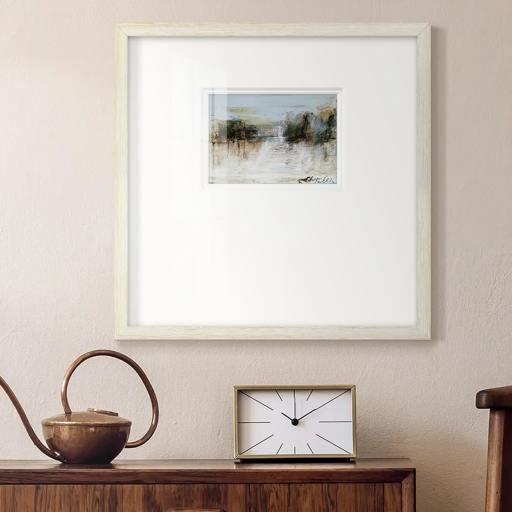 Wintery Horizon IPremium Framed Print A framed cold pressed paper print featuring superior double matting and quality frame. 2 SIZES AVAILABLE 16''X16''' - Overall Size 20''X20''' - Overall Size Each piece is made to order. Each piece comes with hanging hardware. Made in the USA Ready to Hang Giclee Paper Print Plexiglass Beveled Matt Board Double Matte Board