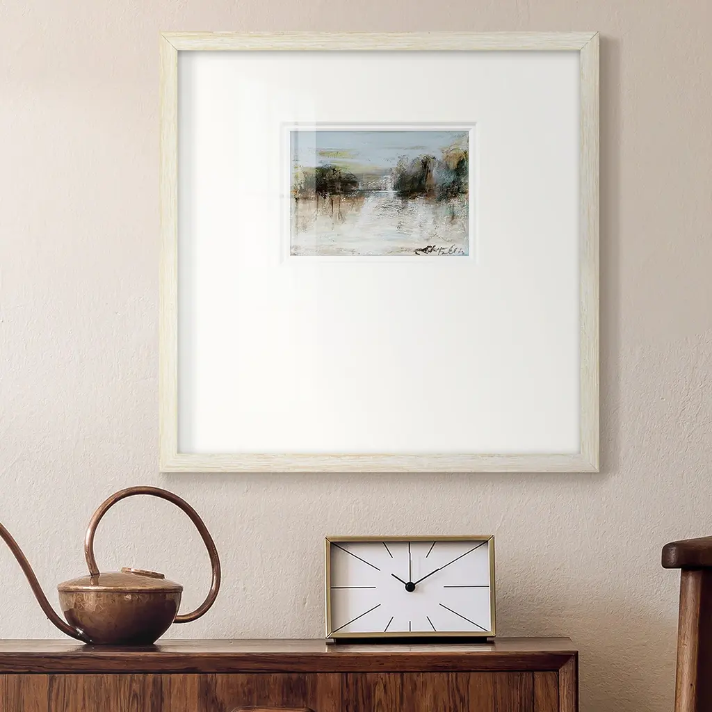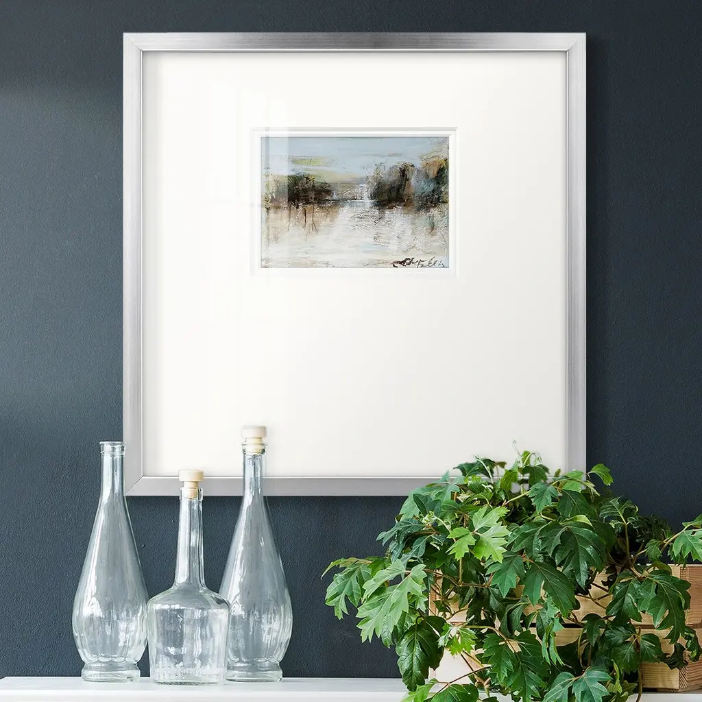 Wintery Horizon IPremium Framed Print A framed cold pressed paper print featuring superior double matting and quality frame. 2 SIZES AVAILABLE 16''X16''' - Overall Size 20''X20''' - Overall Size Each piece is made to order. Each piece comes with hanging hardware. Made in the USA Ready to Hang Giclee Paper Print Plexiglass Beveled Matt Board Double Matte Board