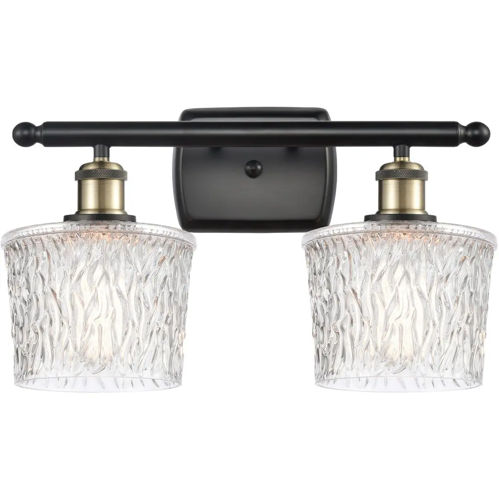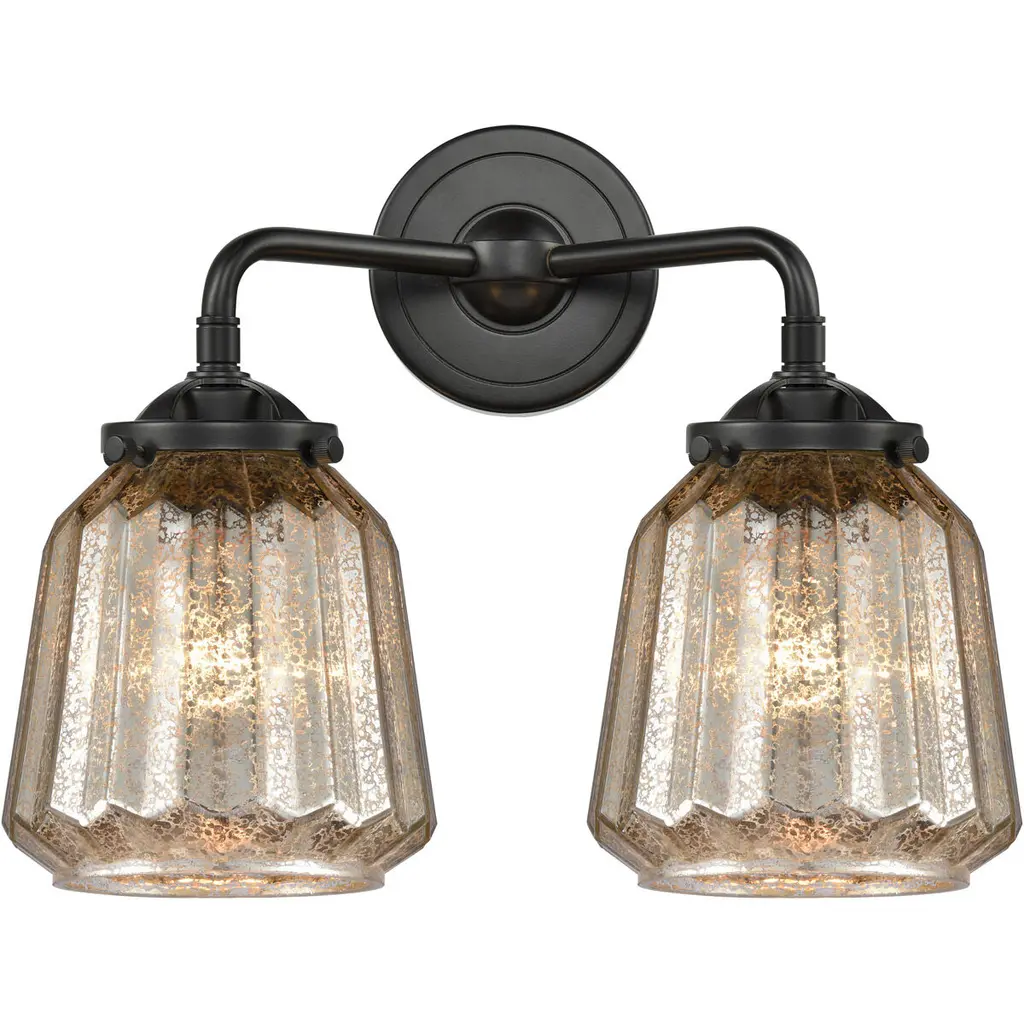 Wire Glass - Regency 2-Light LED Bath Bar - Square w/ Flat Rim Shade - Grid with Clear Bubbles - Polished Chrome - Dedicated LED