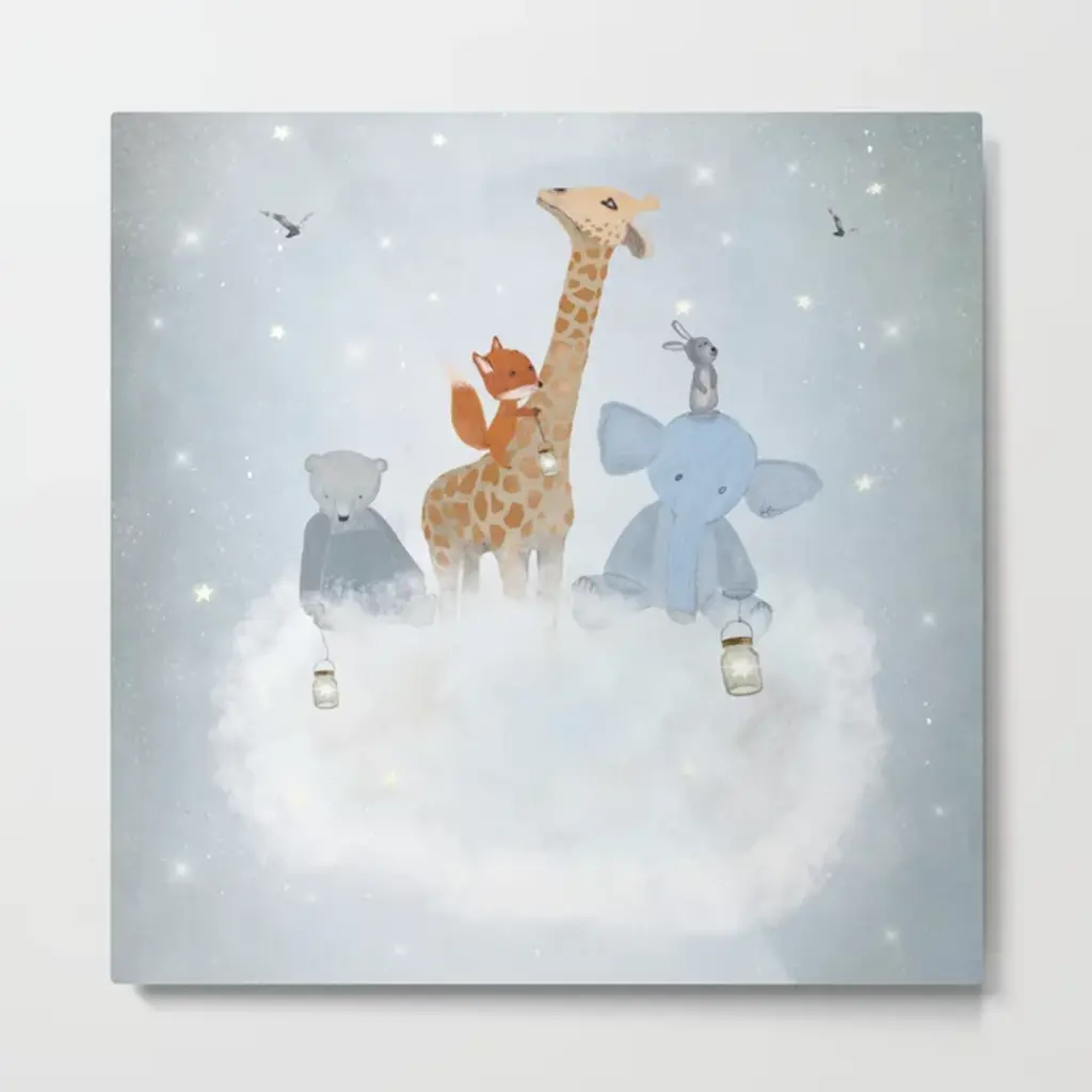 "Wish Upon a Star" shows one of the scenes from the story of the Fox and the Finch seen in our handmade quilt. Originally hand-painted by Bridget Kelly, this is the scene where Fox teaches Finch to howl at the moon and make a wish when they see a shooting star together in the night-time sky. A timeless and endearing painting for little boys or girls of any age. Coordinates with the ?Up Up and Away? Canvas.DIMENSIONS & DETAILSWish Upon a Star stretched canvas reproduction:- Size: 17"x 20"x 1" deep- Sold individually.- Just remove art from box and hang on the wall (nails not included) No framing, no glass, and no hassle.- Safest art for baby and children''s rooms.- Pine wood frame with cotton canvas surface.- Saw tooth mount.- Easily cleaned with a dry soft cloth