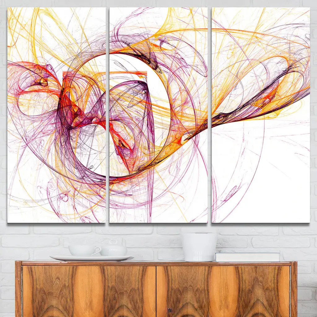 "Wisps Of Smoke Orange Purple" Digital Metal Wall Art, 3 Panels, 36"x28"
