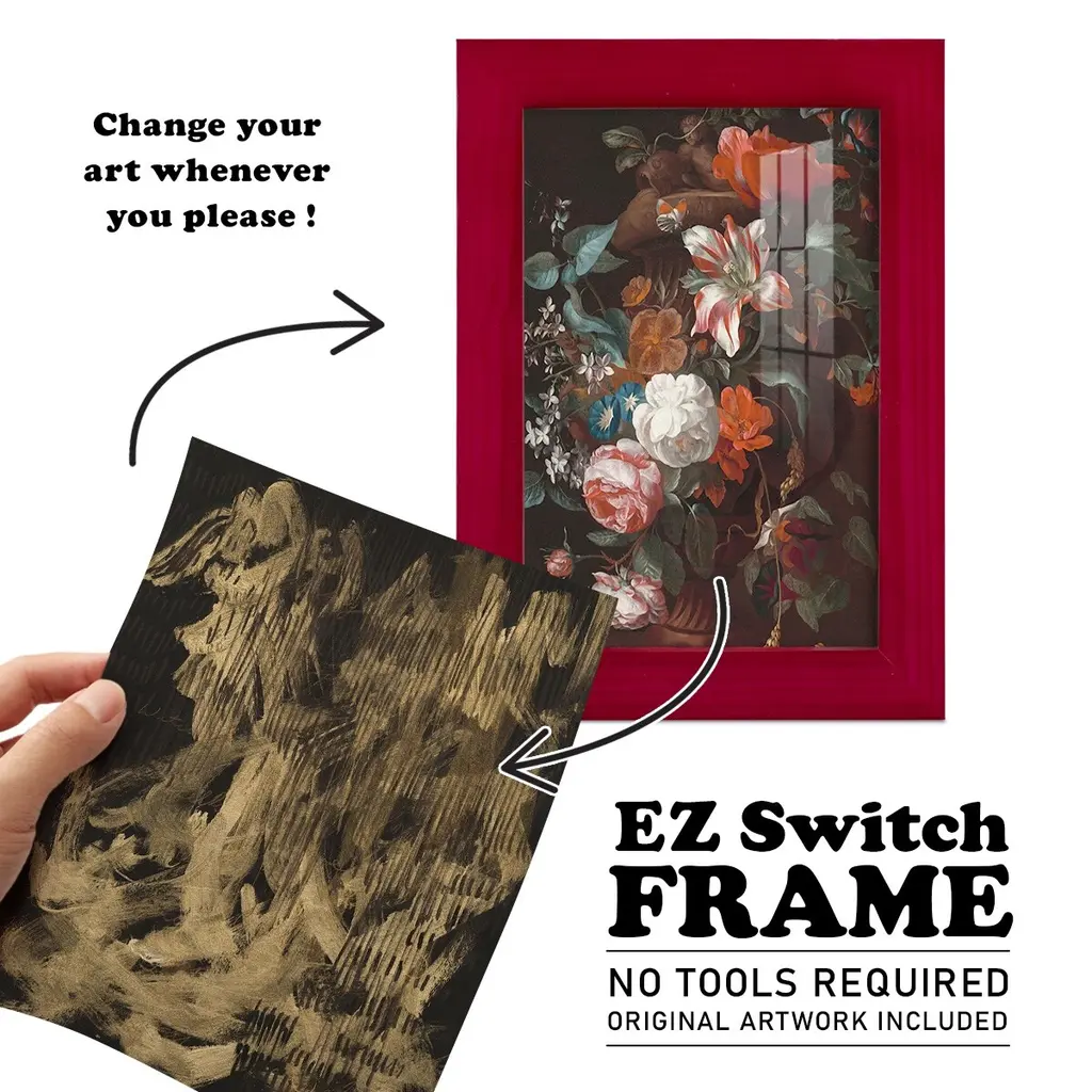 Witchery -EZ SWITCH Framed Print w/glass-Cherry Red A delightful, framed print. Featuring a solid wood frame with real wood glass. This premium print is giclee quality. In addition, every frame features a removable back and table top stand. This allows you to change your art in the future or to just stand the art on a table for a new look. We are sure you'll enjoy our new series of EZ SWITCH Framed Art. Solid Wood Frame Real Glass Removable / Replaceable Art Built in Tabletop Stand Sizes range from 4x6 up to 12x15 - buy just one or pair them up as sets as you see fit.