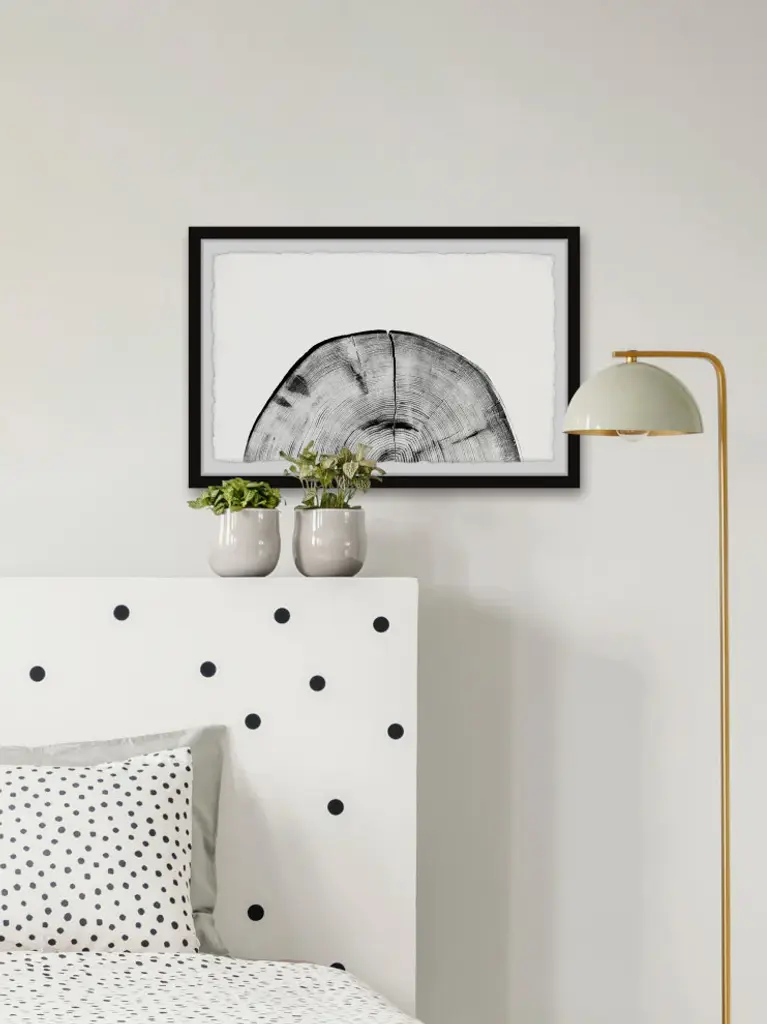 Show off your love for the great outdoors with this black and white photographic print that features an up-close view of a cut tree stump. Proudly printed in the USA, this piece is printed on high quality archive paper and professionally hand-framed. With wall-mounting hooks included, this artful accent is ready to hang up as soon as it reaches your front door.- Top quality Giclee print on high resolution Archive Paper- Hand cut deckled edges- High quality durable non-warping frame- Finished under shatter resistant plexiglass- Arrives ready to hang- Includes a certificate of authenticity- Printed in the USA