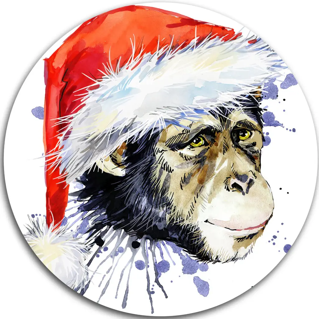 Wolf With Red Cap Illustration, Animal Round Wall Art, 23"