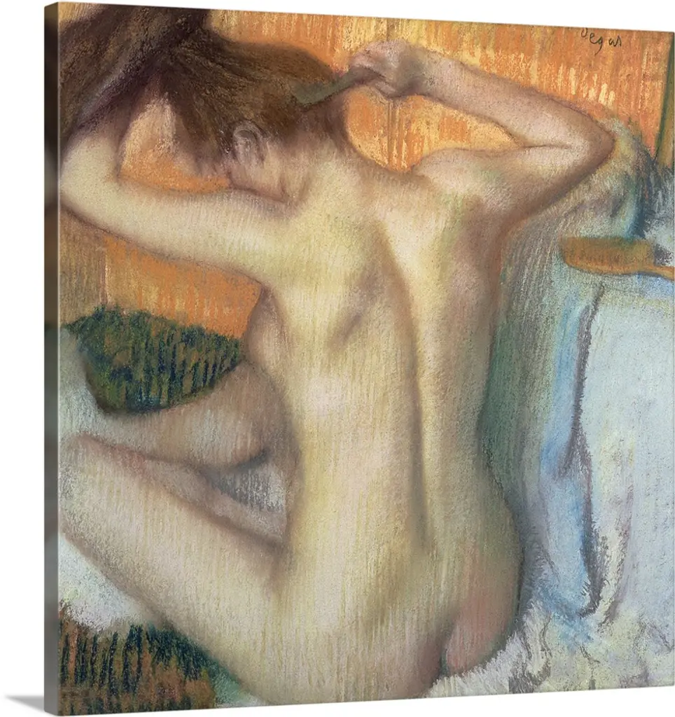 When Degas showed his suite of nudes, including this pastel, at the eighth and final Impressionist exhibition in 1886, critics viciously attacked the ungainly poses of his bathers. After the exhibition Degas gave the picture to Mary Cassatt in exchange for her painting?Girl Arranging Her Hair?(National Gallery of Art, Washington). Louisine Havemeyer eventually acquired both works.